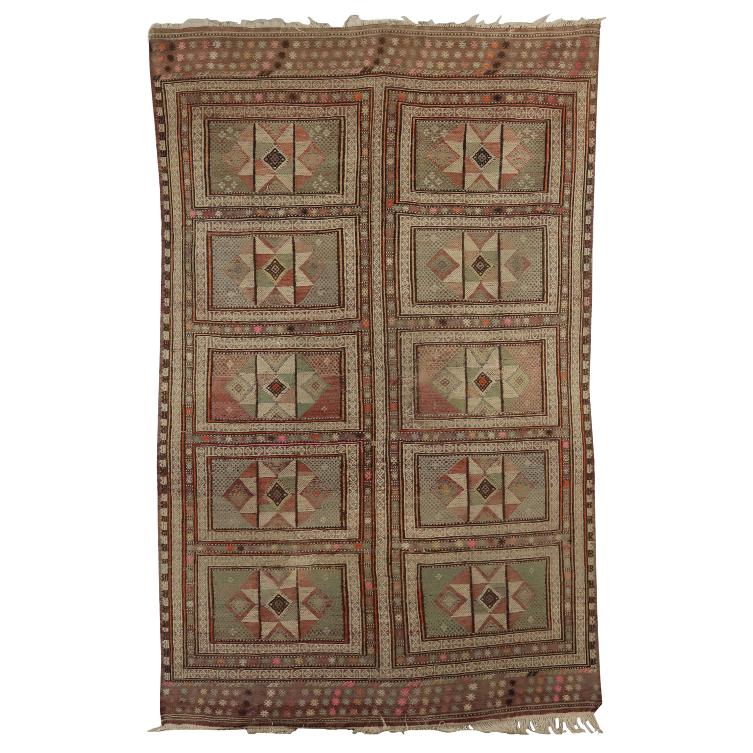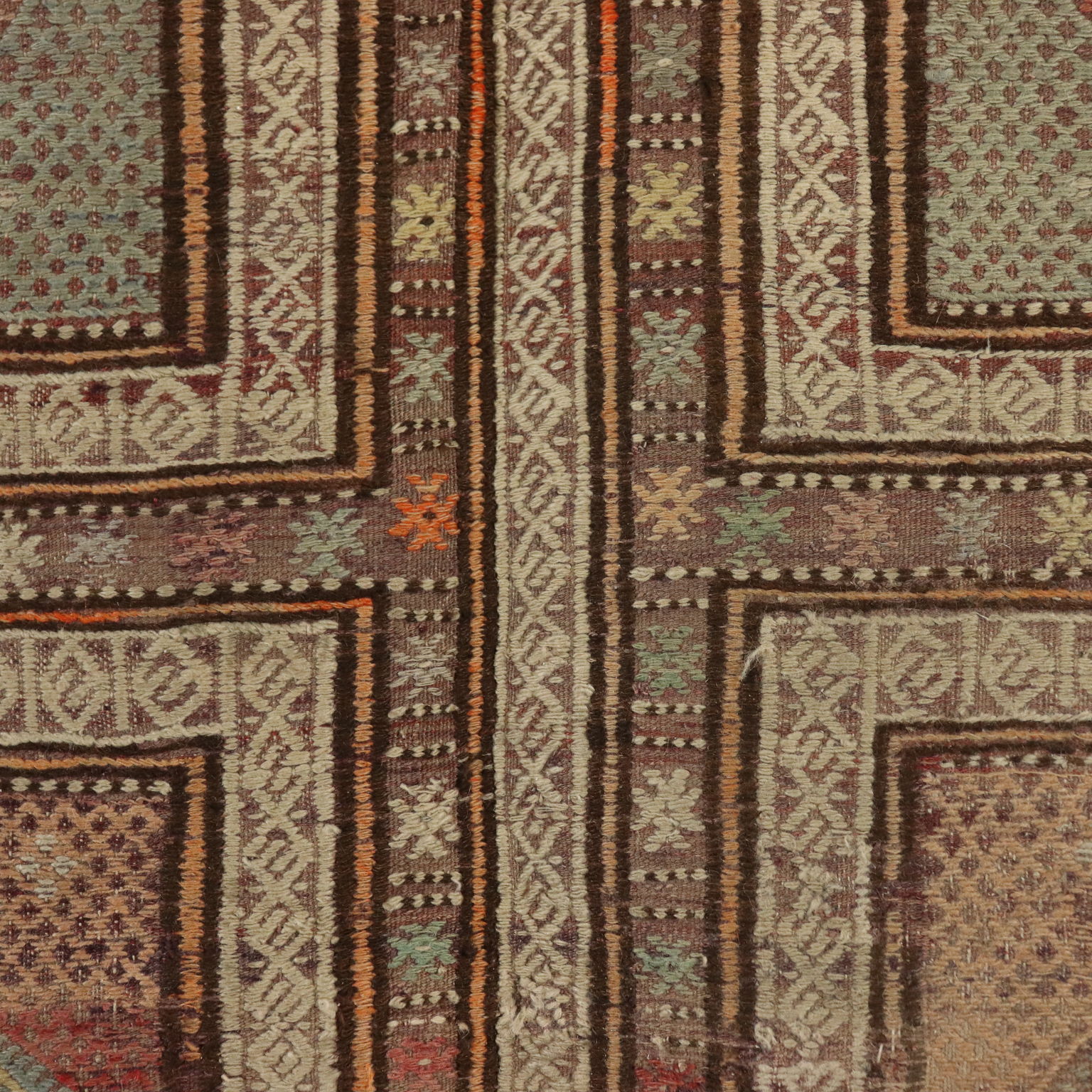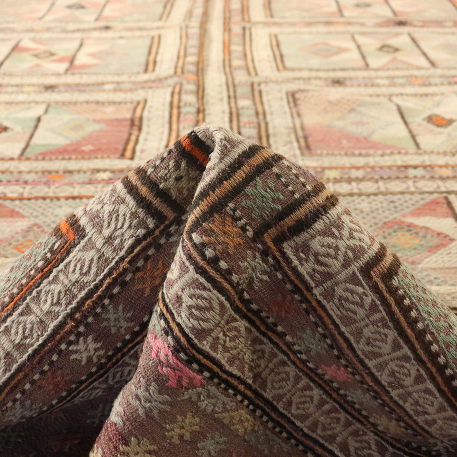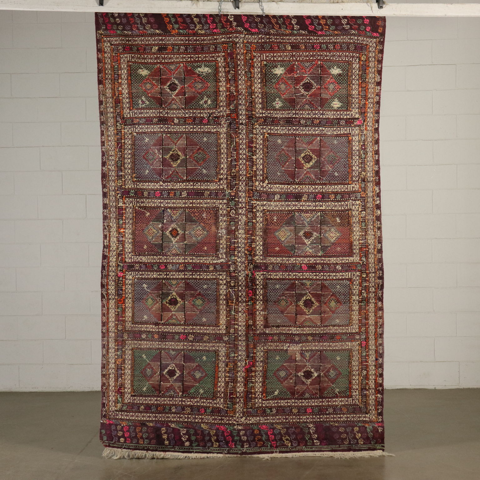 Tappeto Kilim in lana e cotone, nodo fine, fabbricazione manuale, in buono stato.