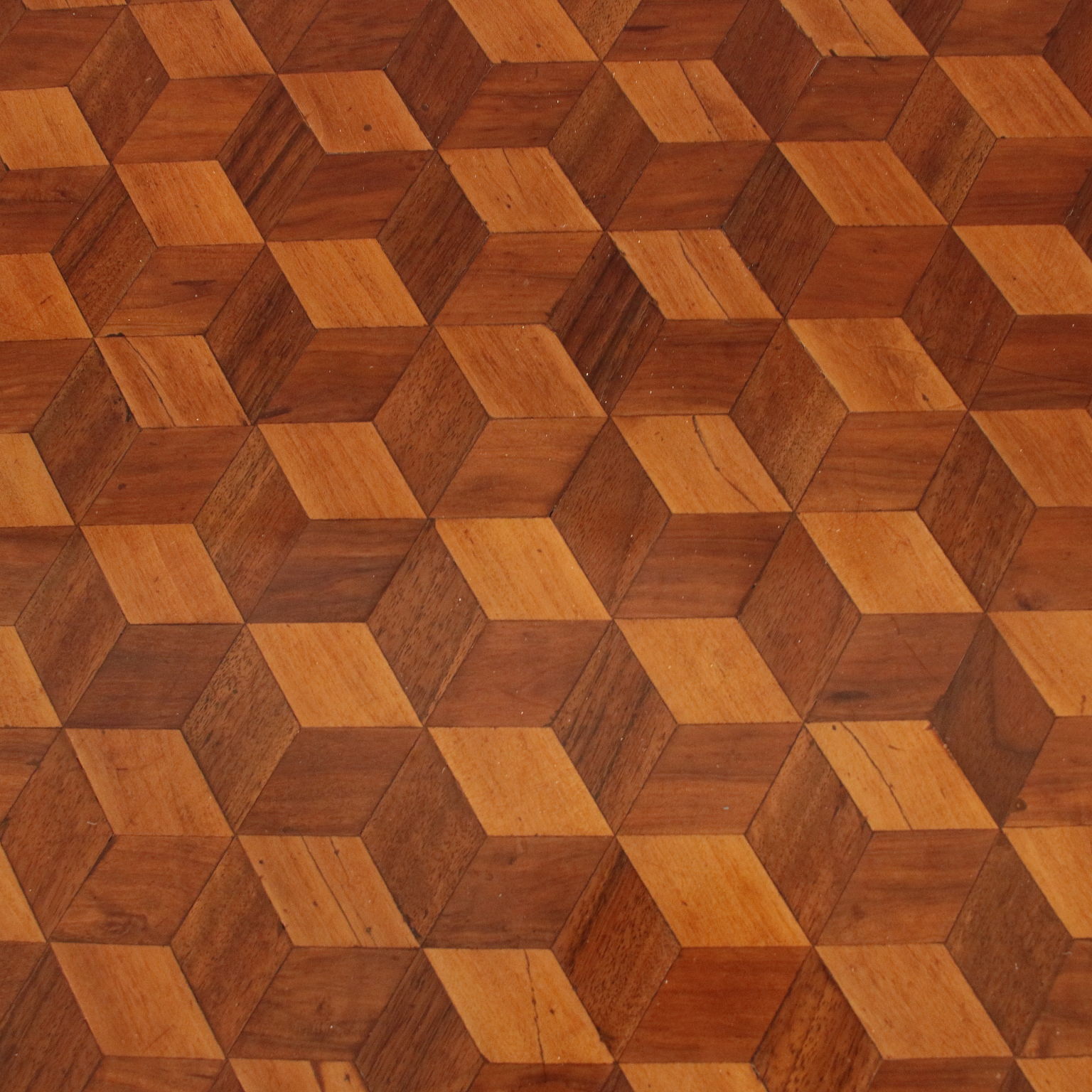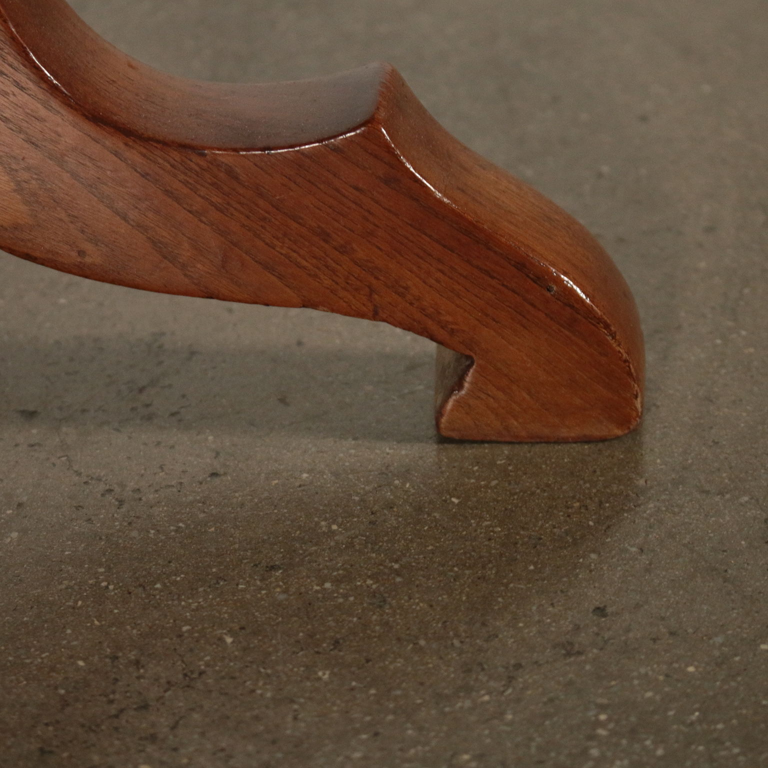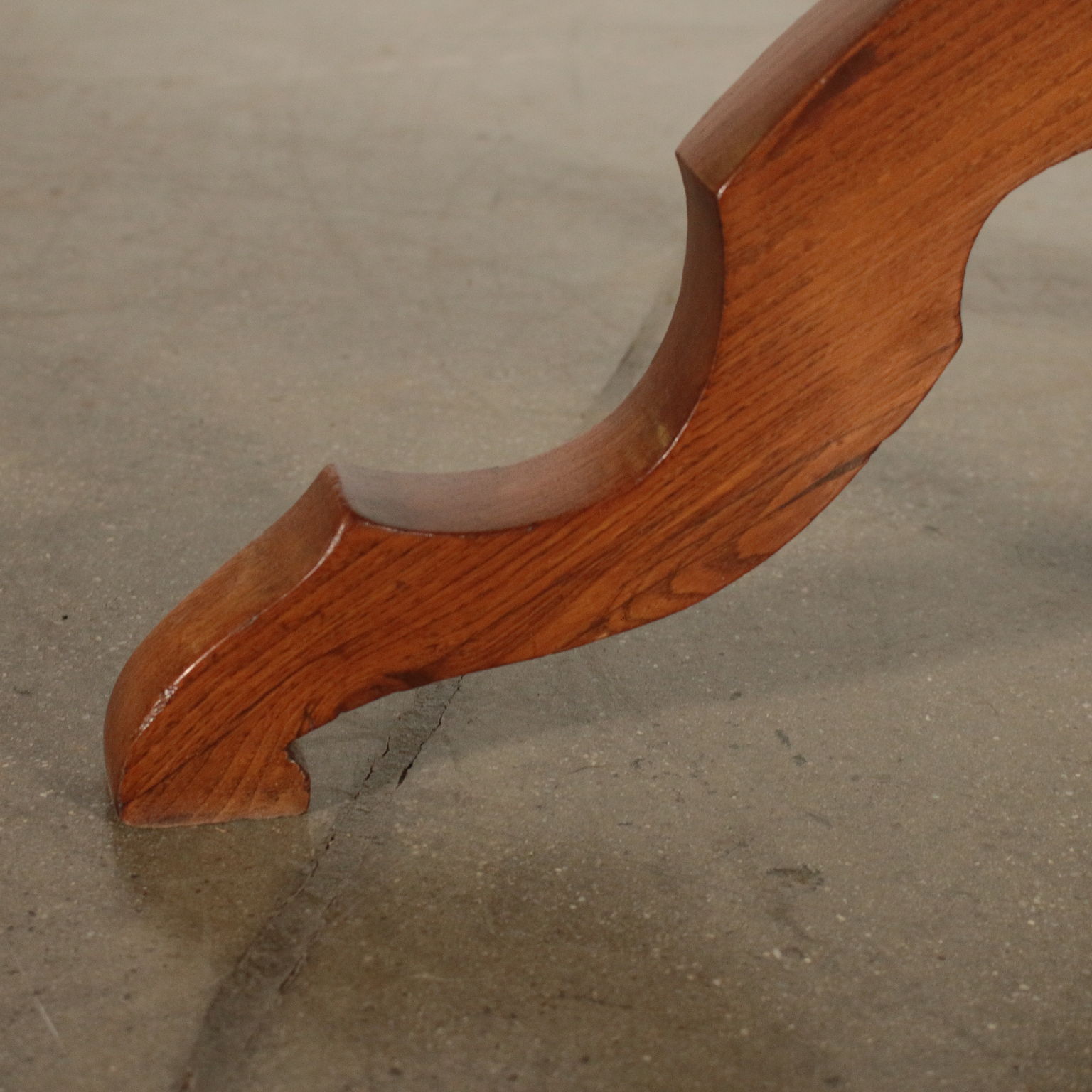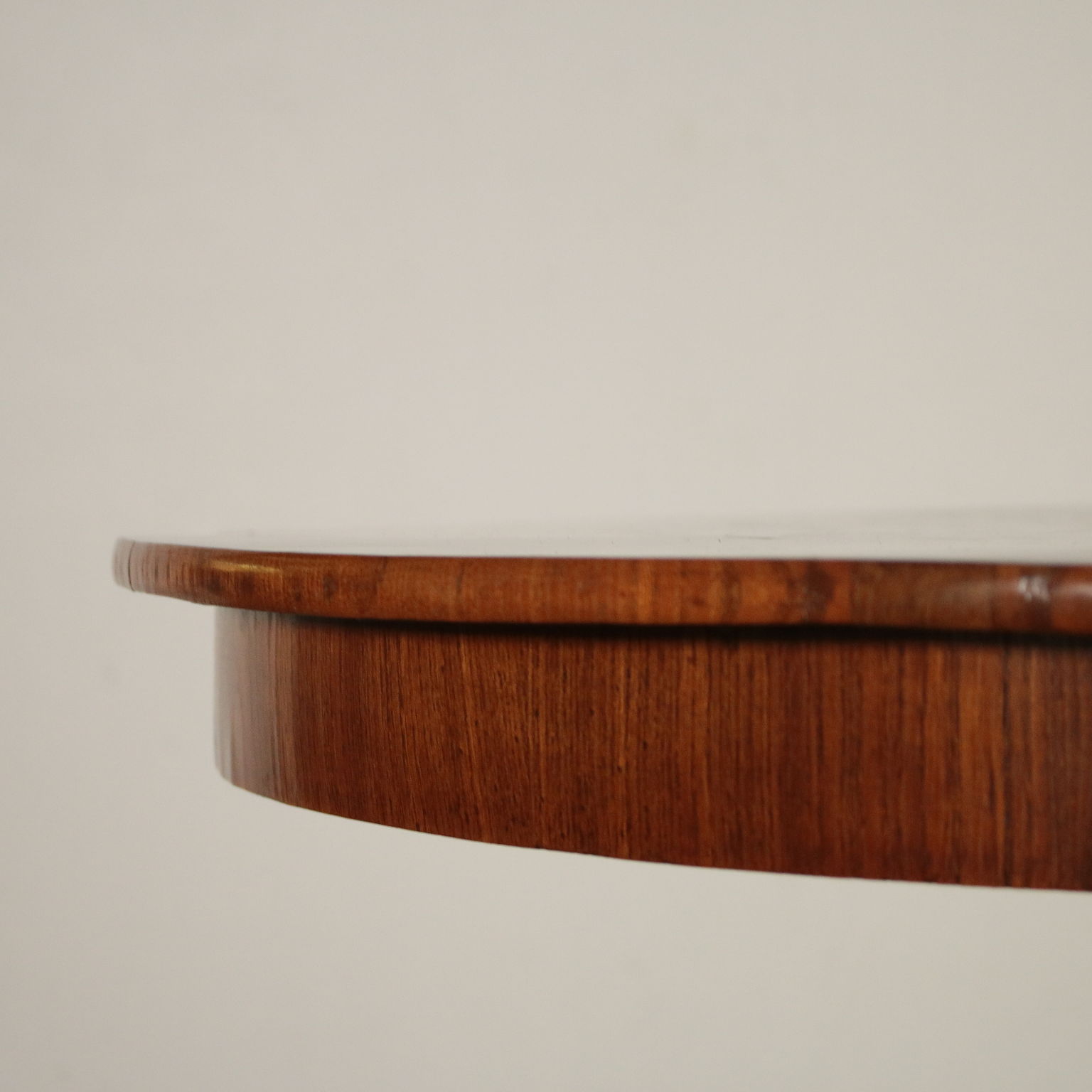 Retto da balaustro terminante con piedi mossi. Presenta piano tondo intarsiato a marqueterie.