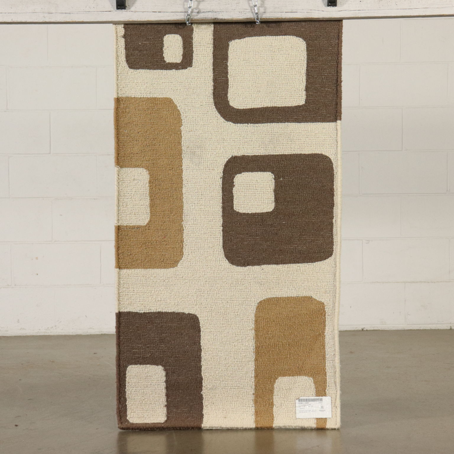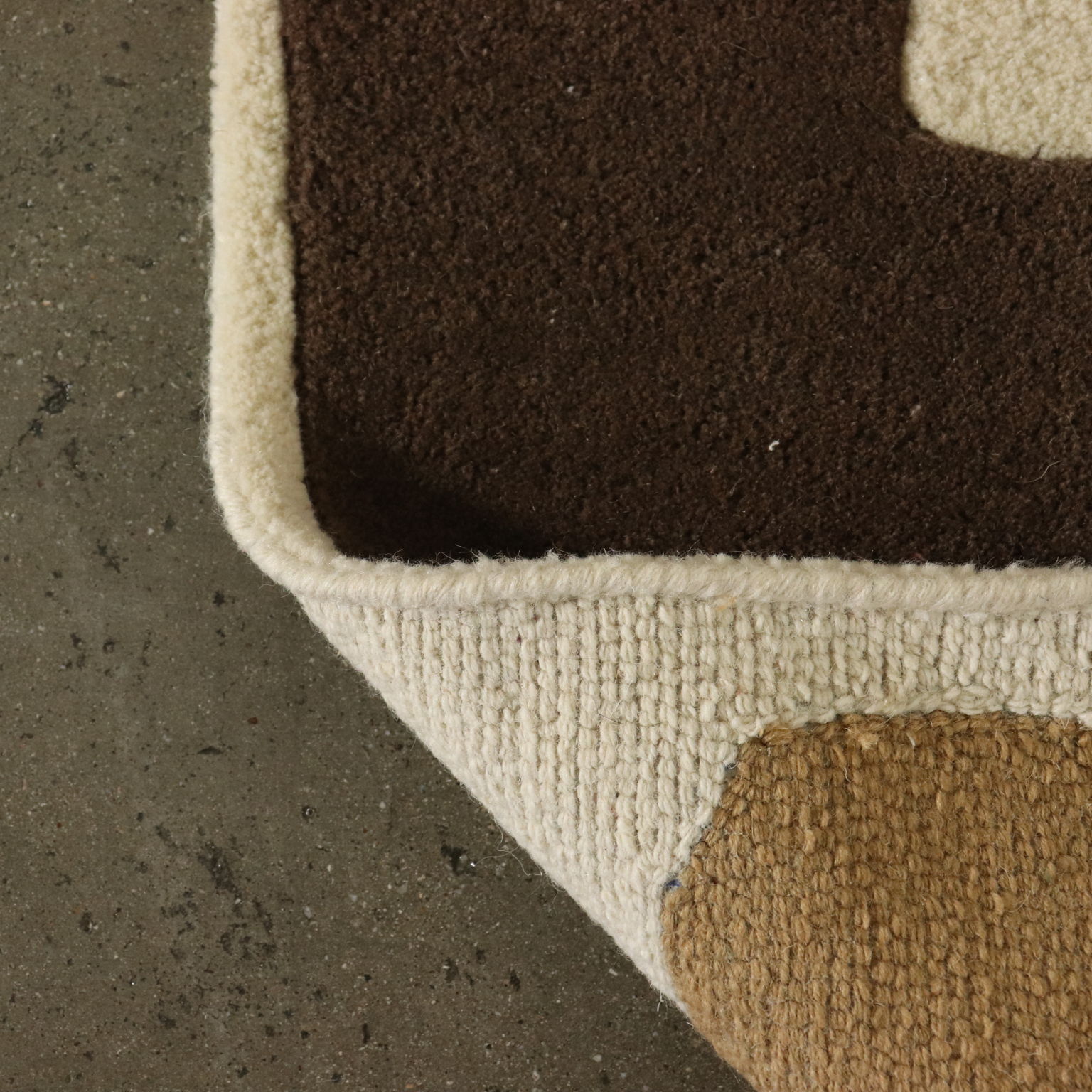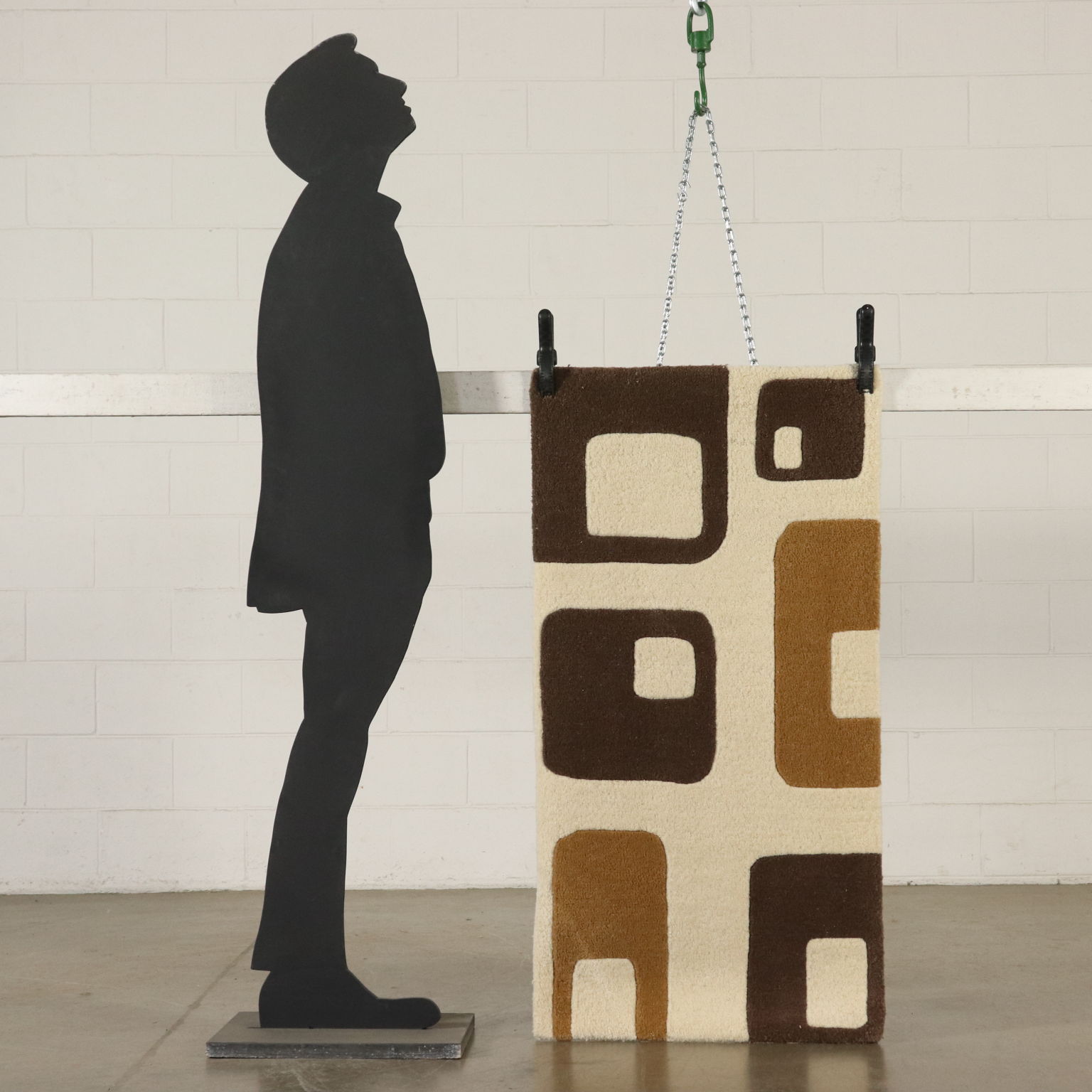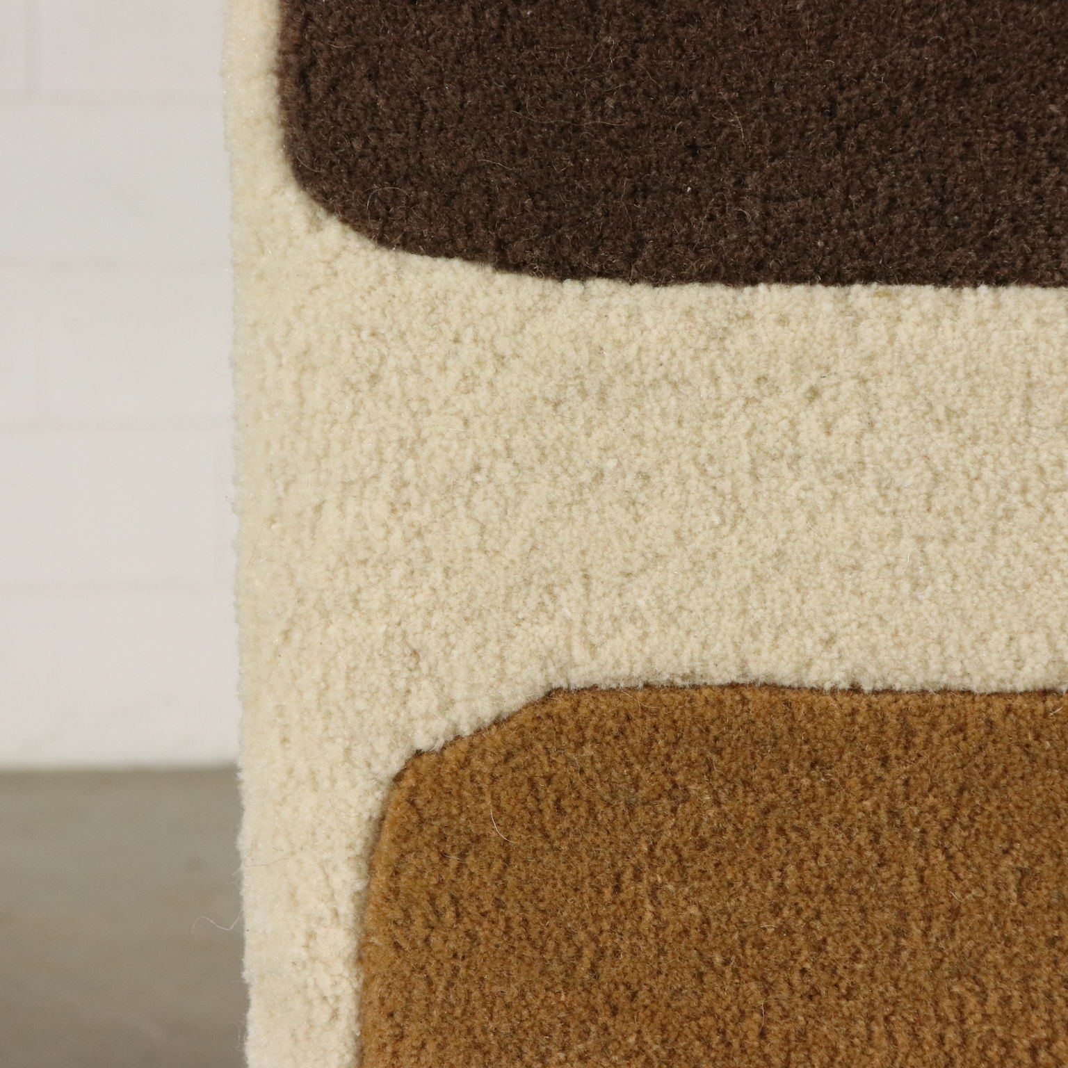 Realizzato su telaio in legno con lana tinta a mano con colori vegetali. Design semplice ed elegante.