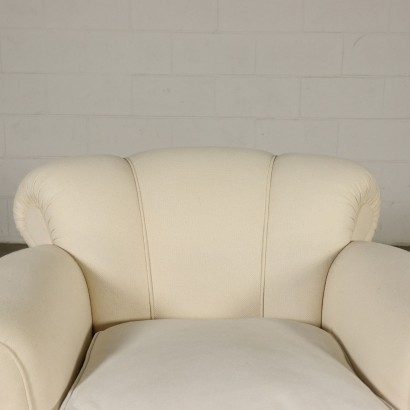 Coppia di poltrone imbottite rette da piedini in noce intagliati.