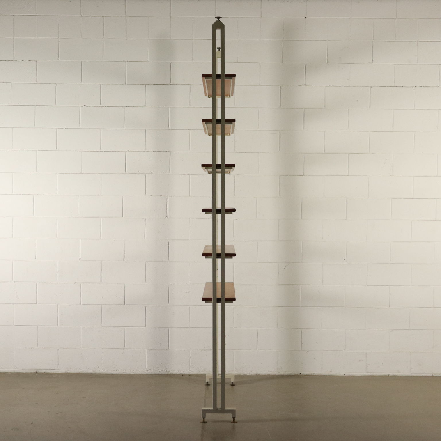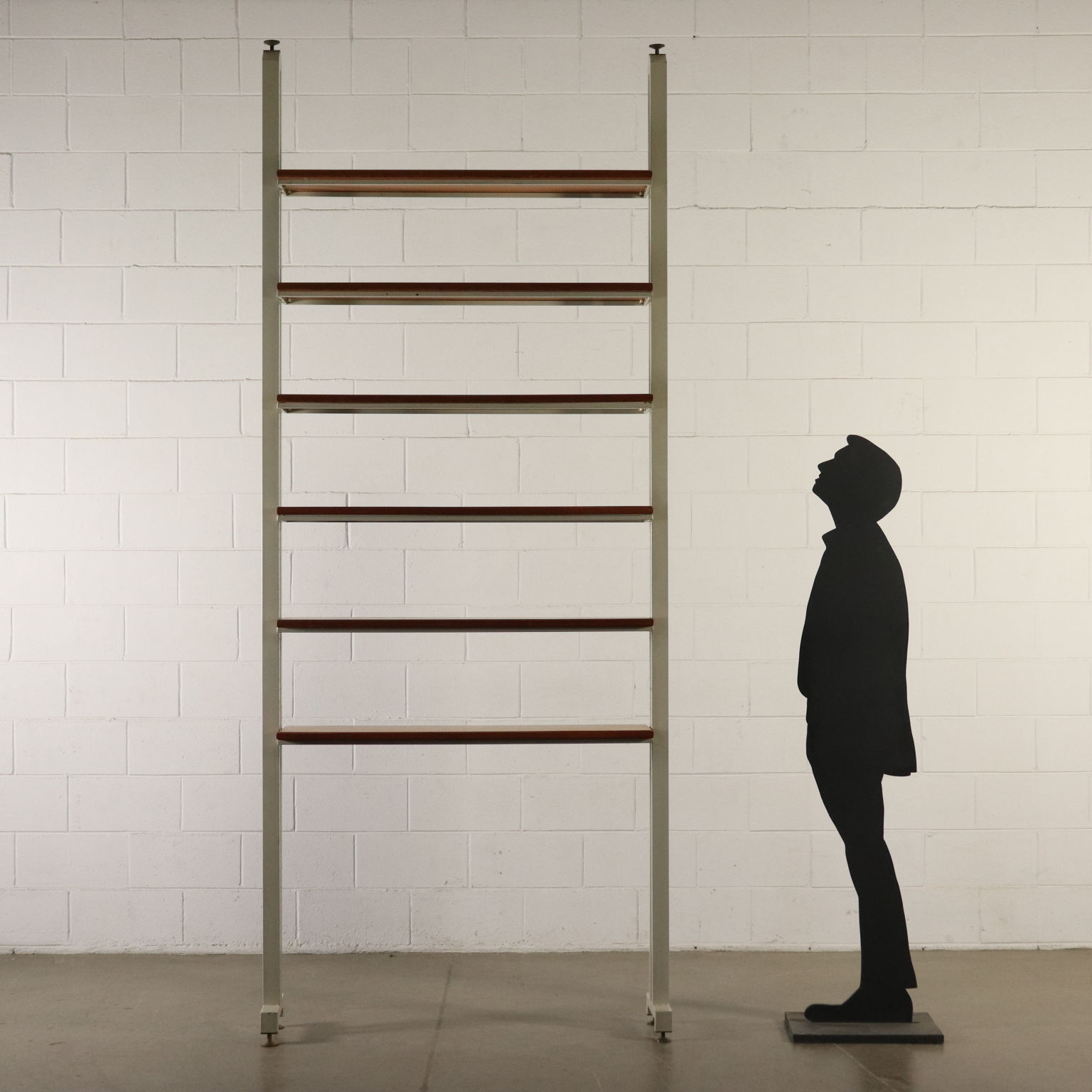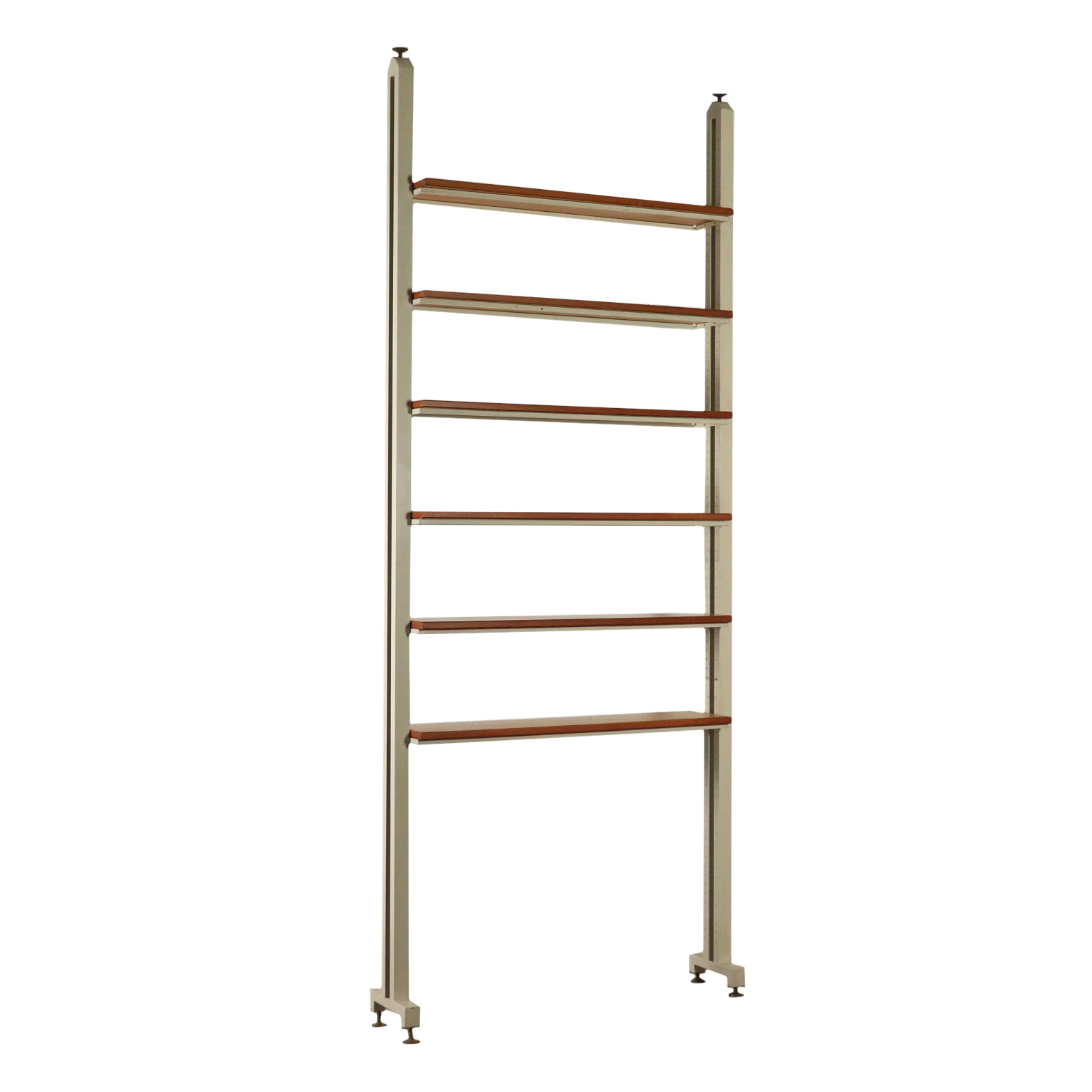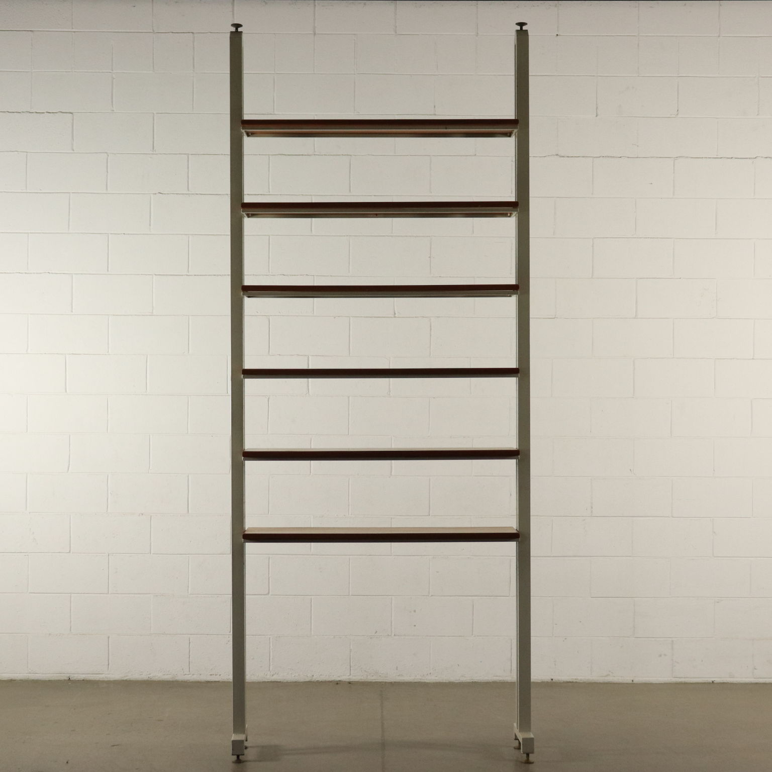 Libreria a soffitto con montanti in metallo, ripiani in acero. Buone condizioni.
