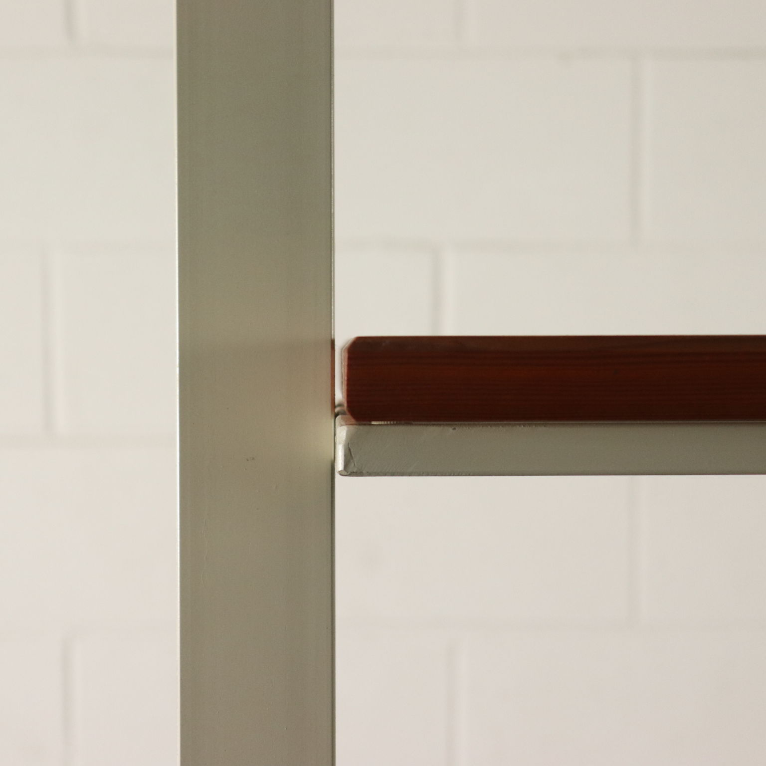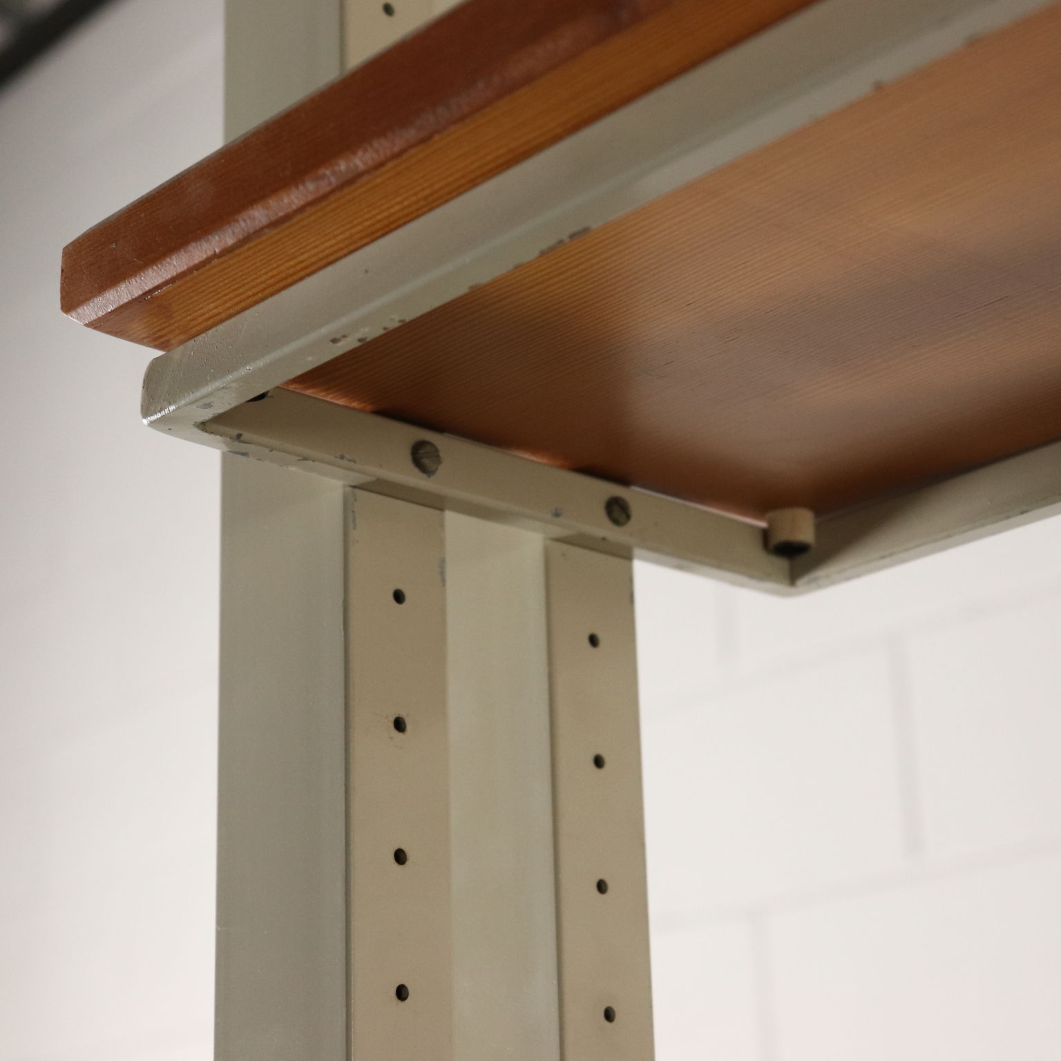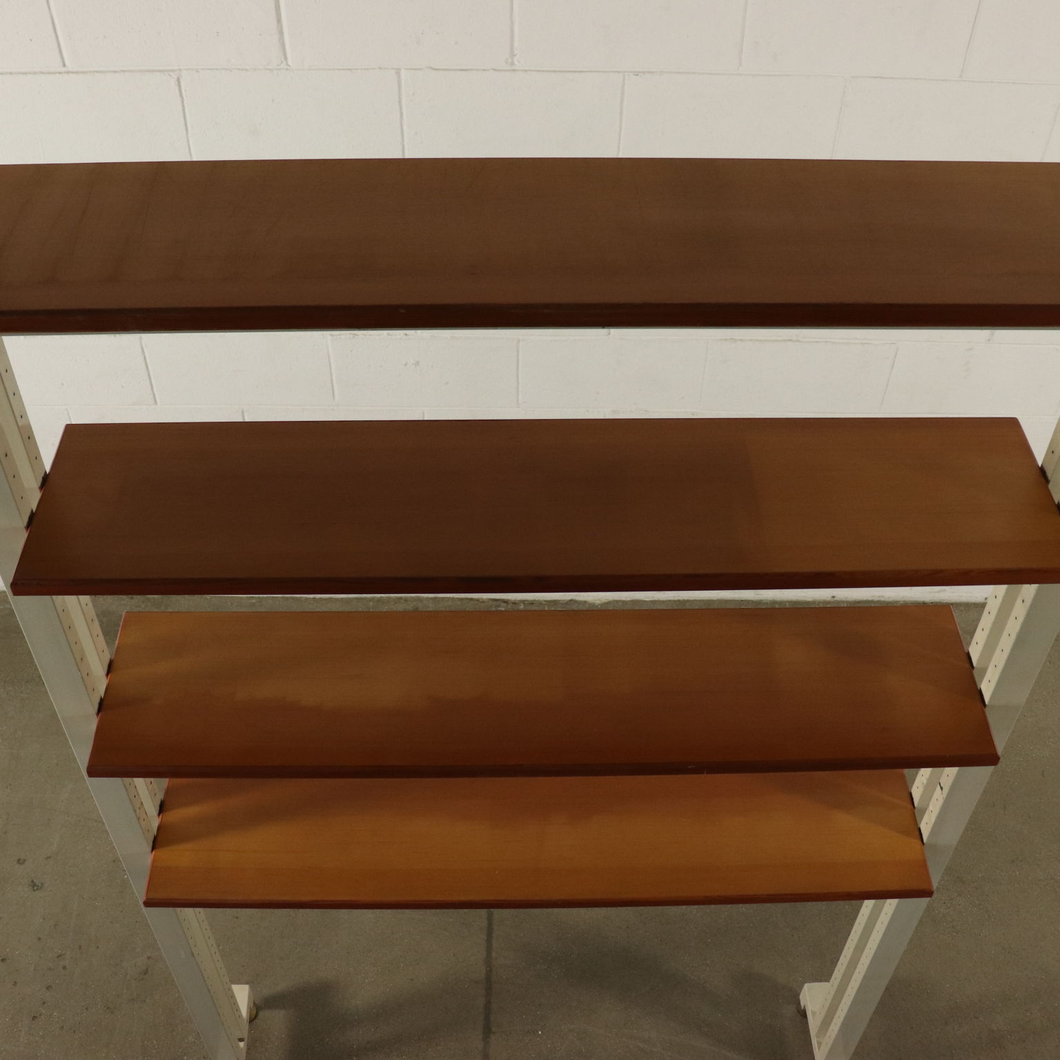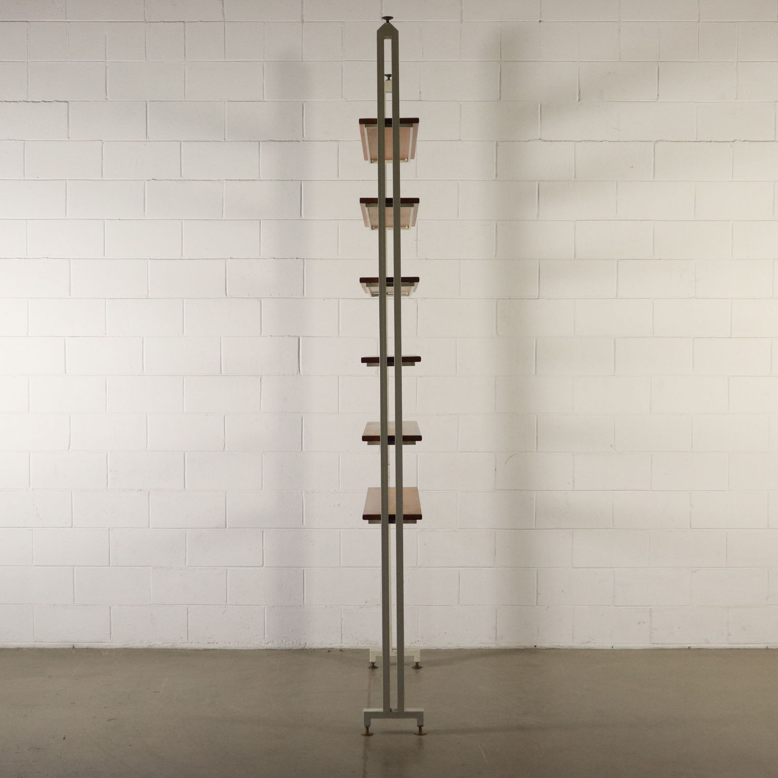 Libreria a soffitto con montanti in metallo, ripiani in acero. Buone condizioni.