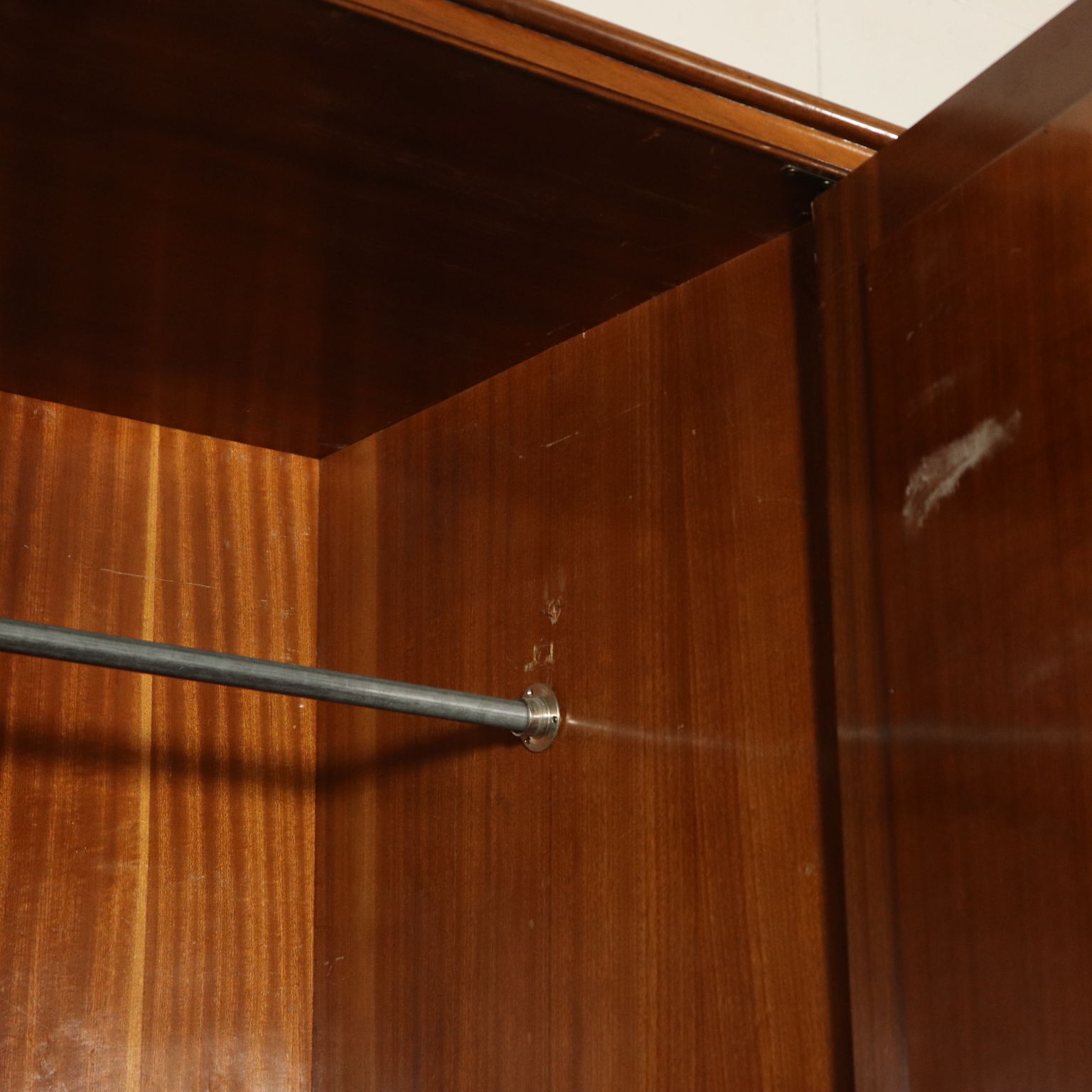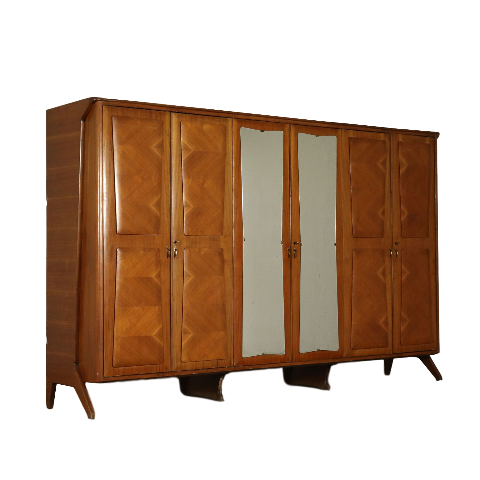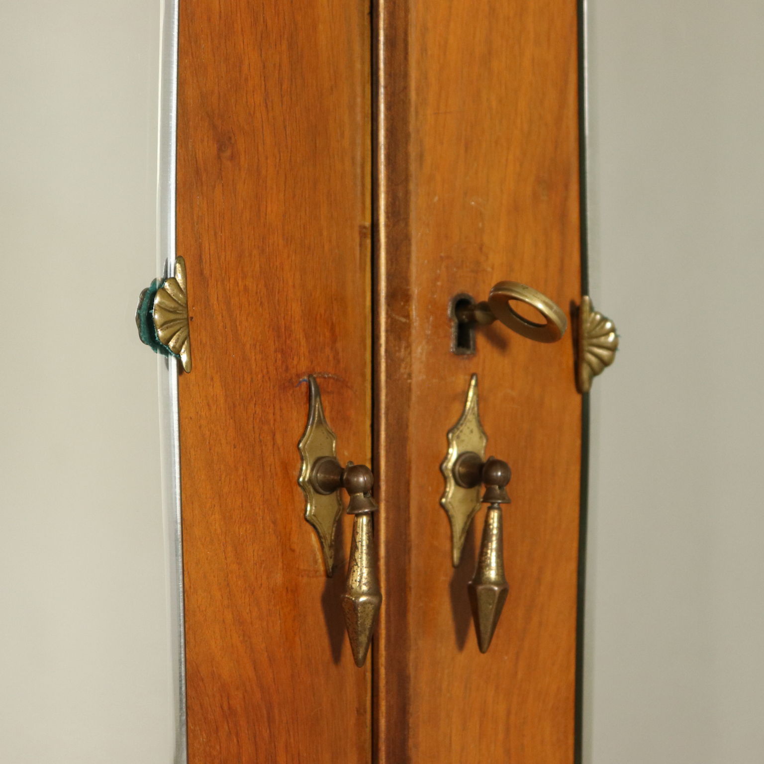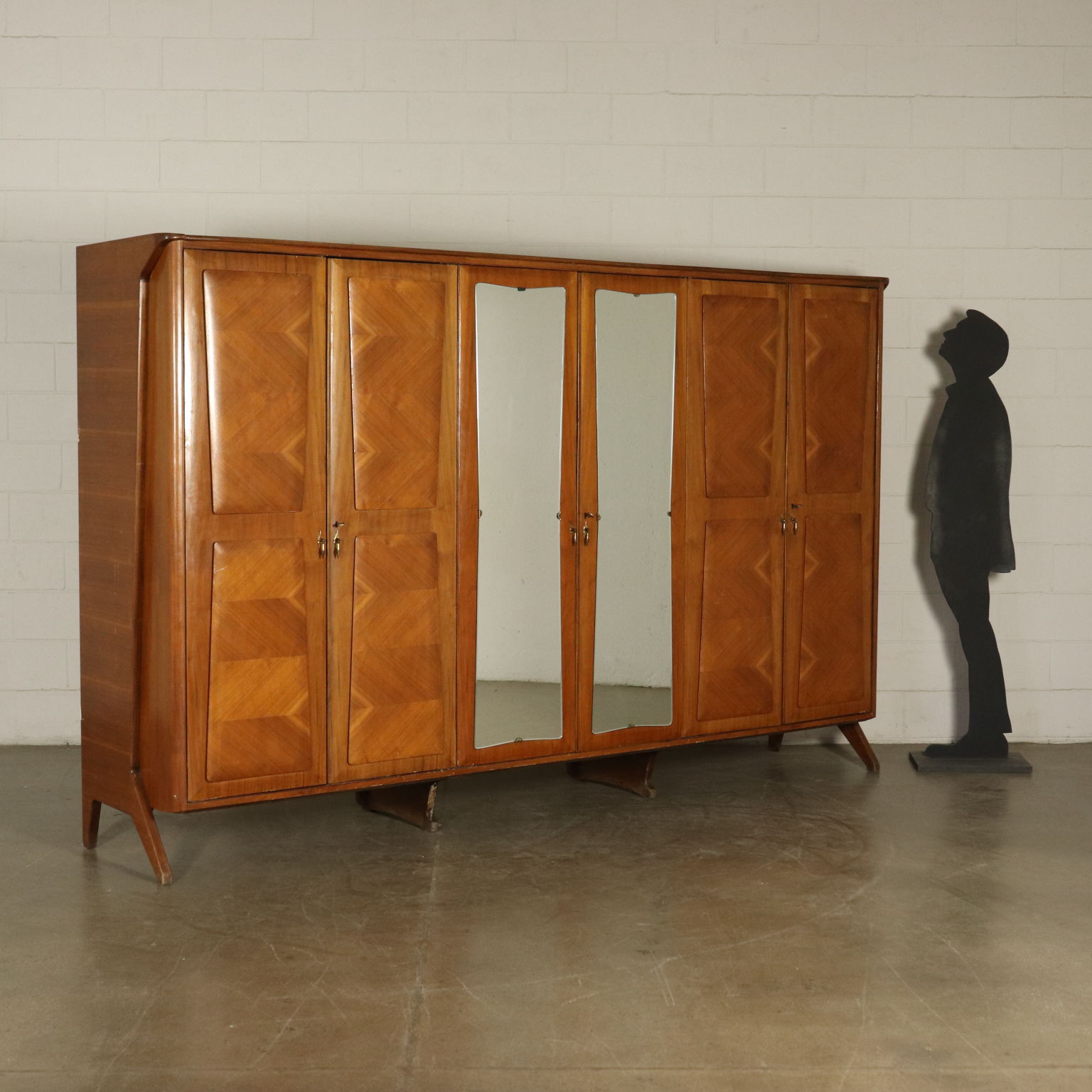 Mobile armadio; legno impiallacciato noce e vetro a specchio.