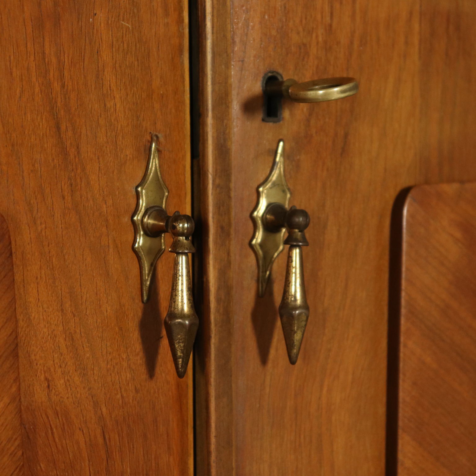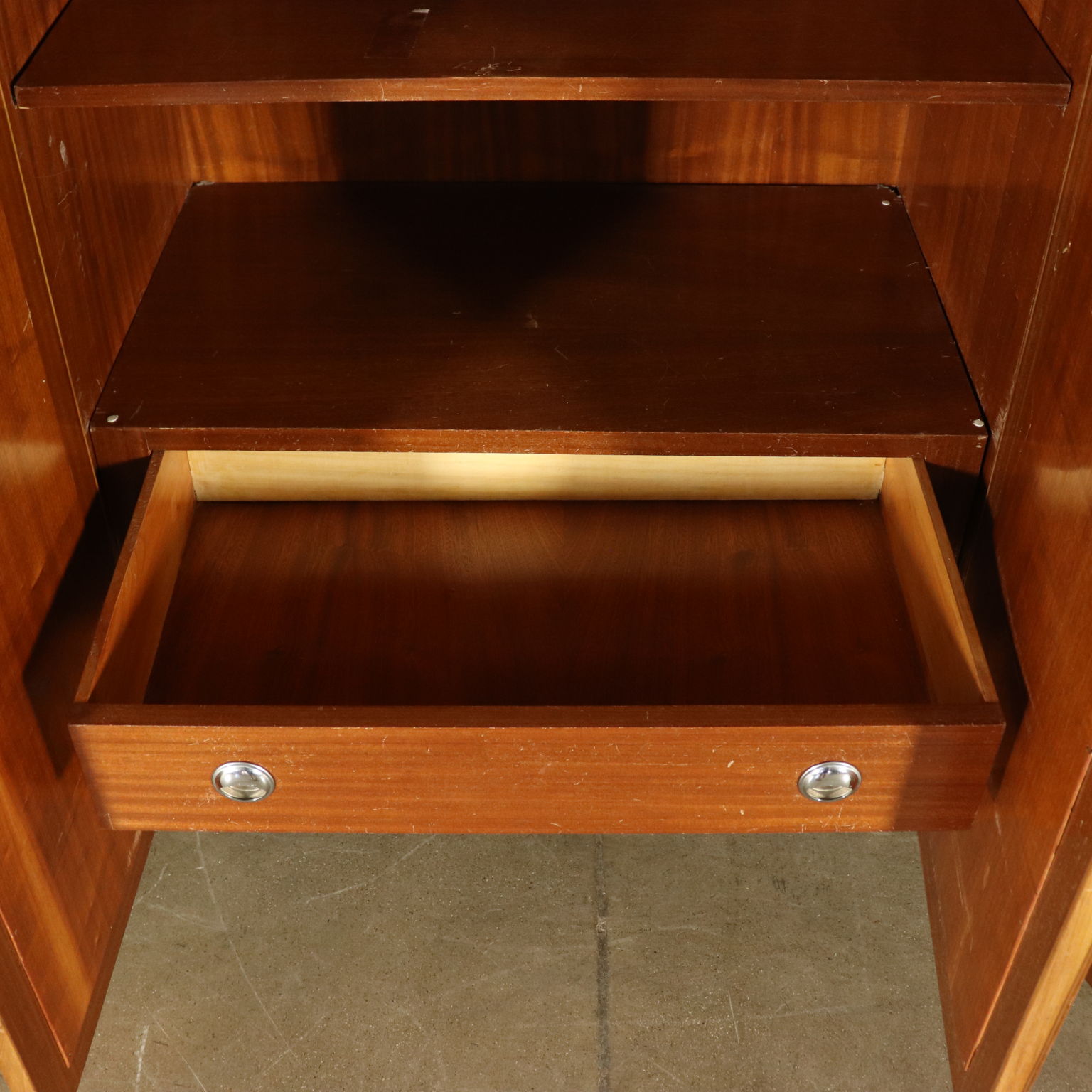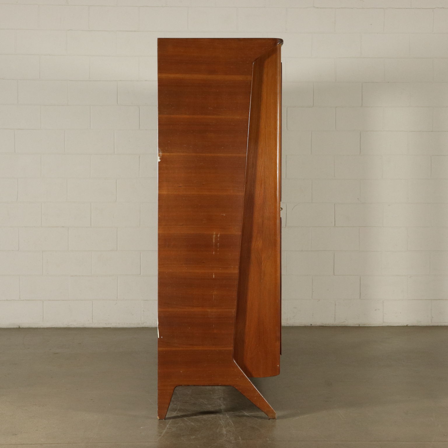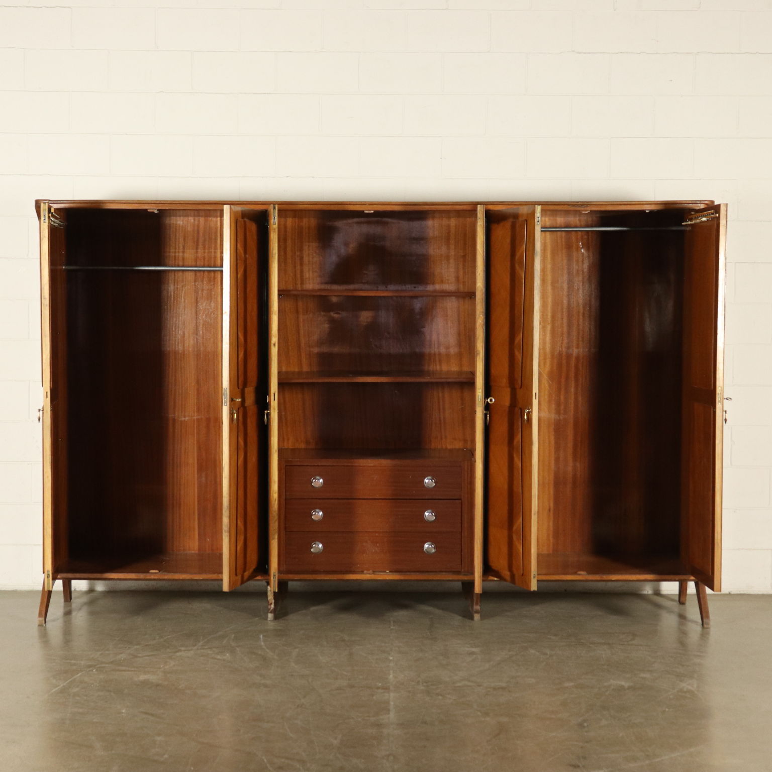 Mobile armadio; legno impiallacciato noce e vetro a specchio.