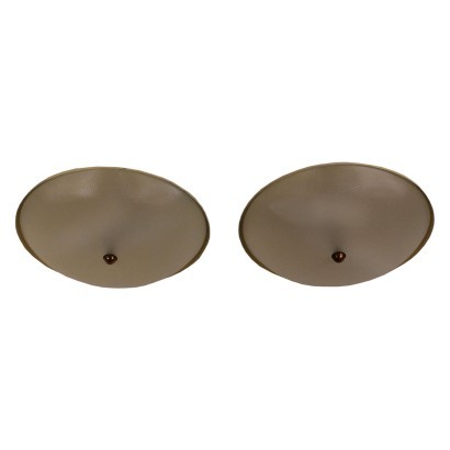 Coppia di lampade a soffitto/parte, alluminio smaltato, vetro, ottone.