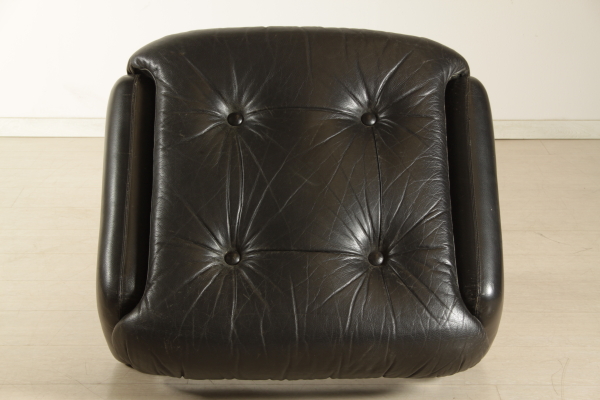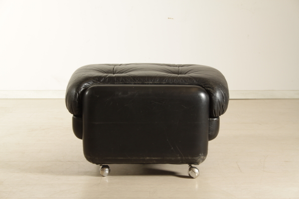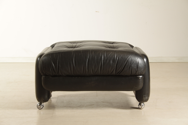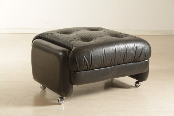 La struttura del poggiapiedi, come il cuscino, è imbottita in espanso e ricoperta in pelle. Ha quattro ruote girevoli.