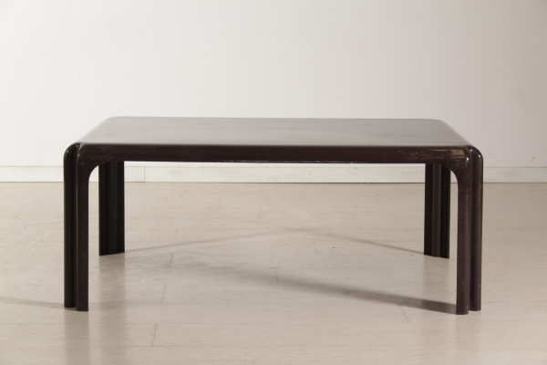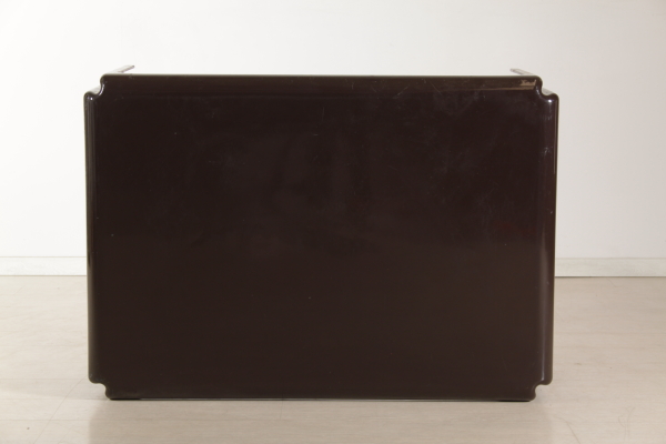 Tavolino in abs con finiture a vernice plastificata marrone scuro.