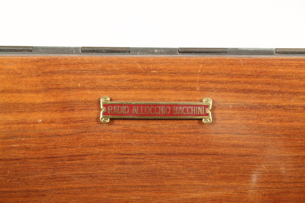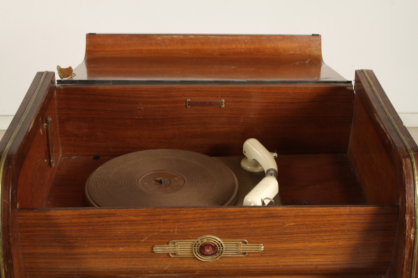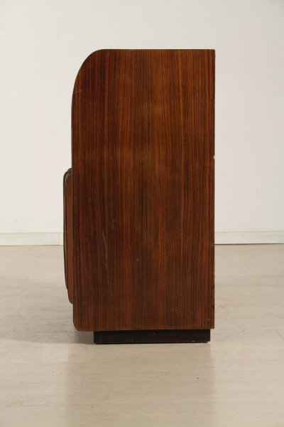 Mobile radio impiallacciato in palissandro con radio a valvole e giradischi.