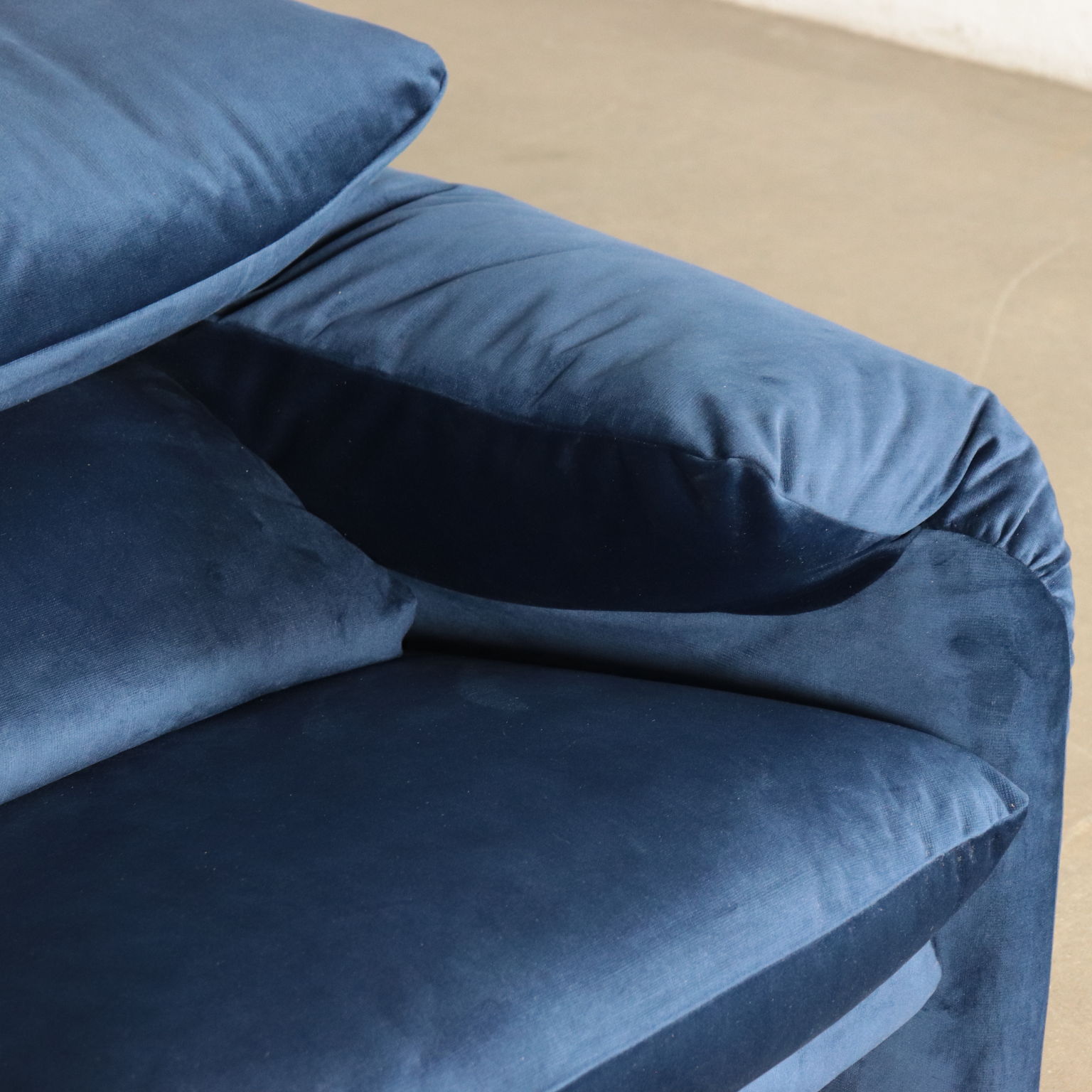 Divano nello stile "Maralunga" di Vico Magistretti. Imbottitura in espanso, rivestimento in velluto.