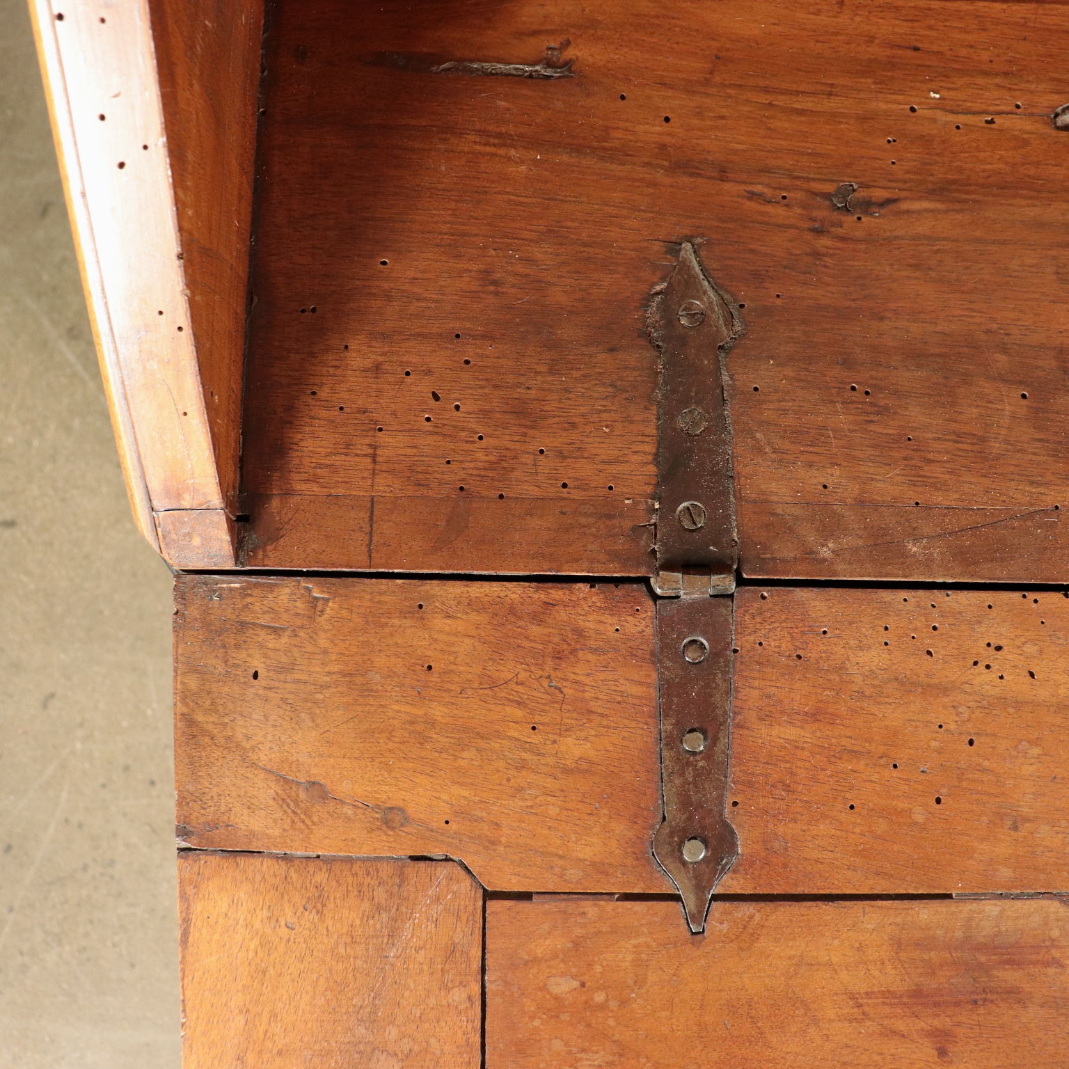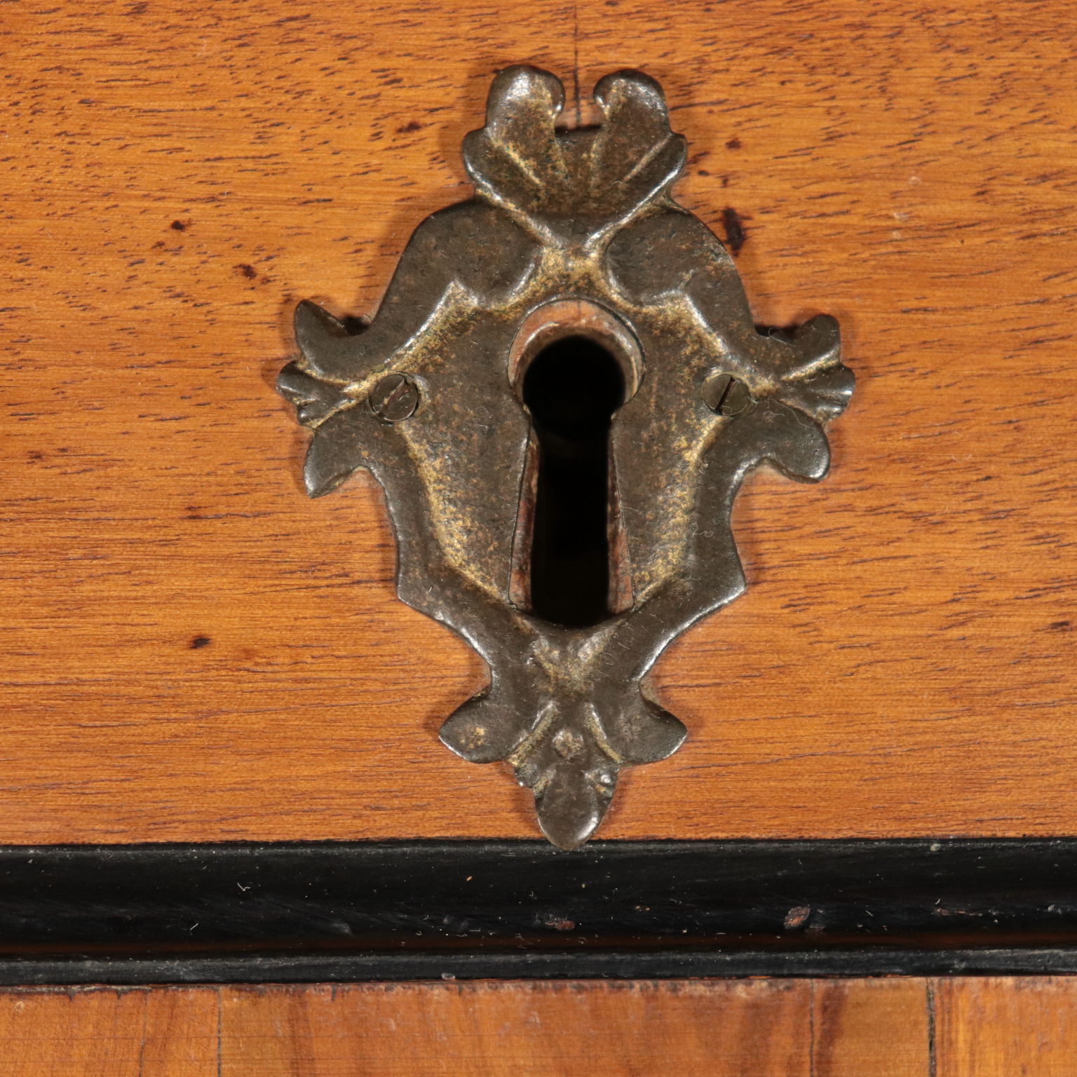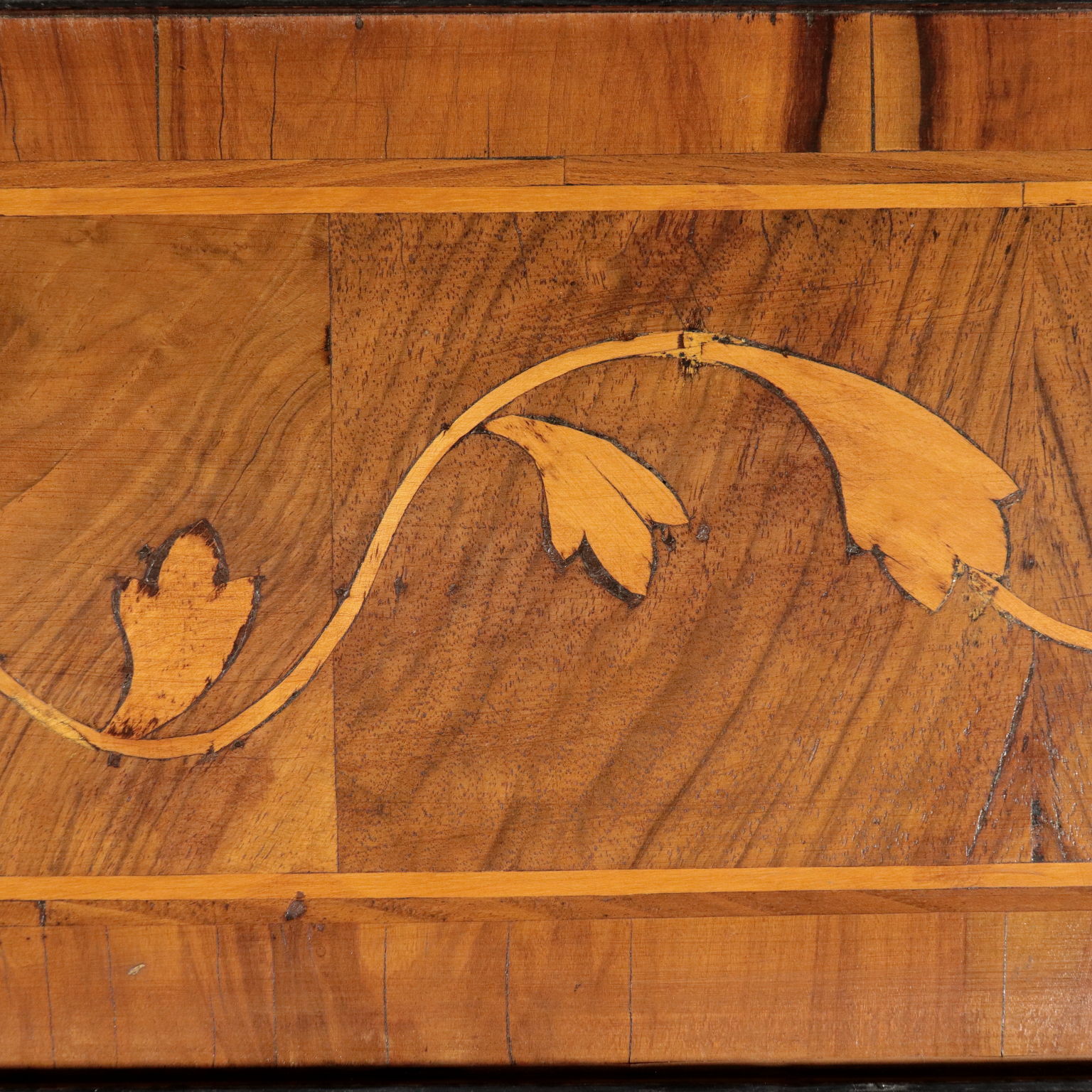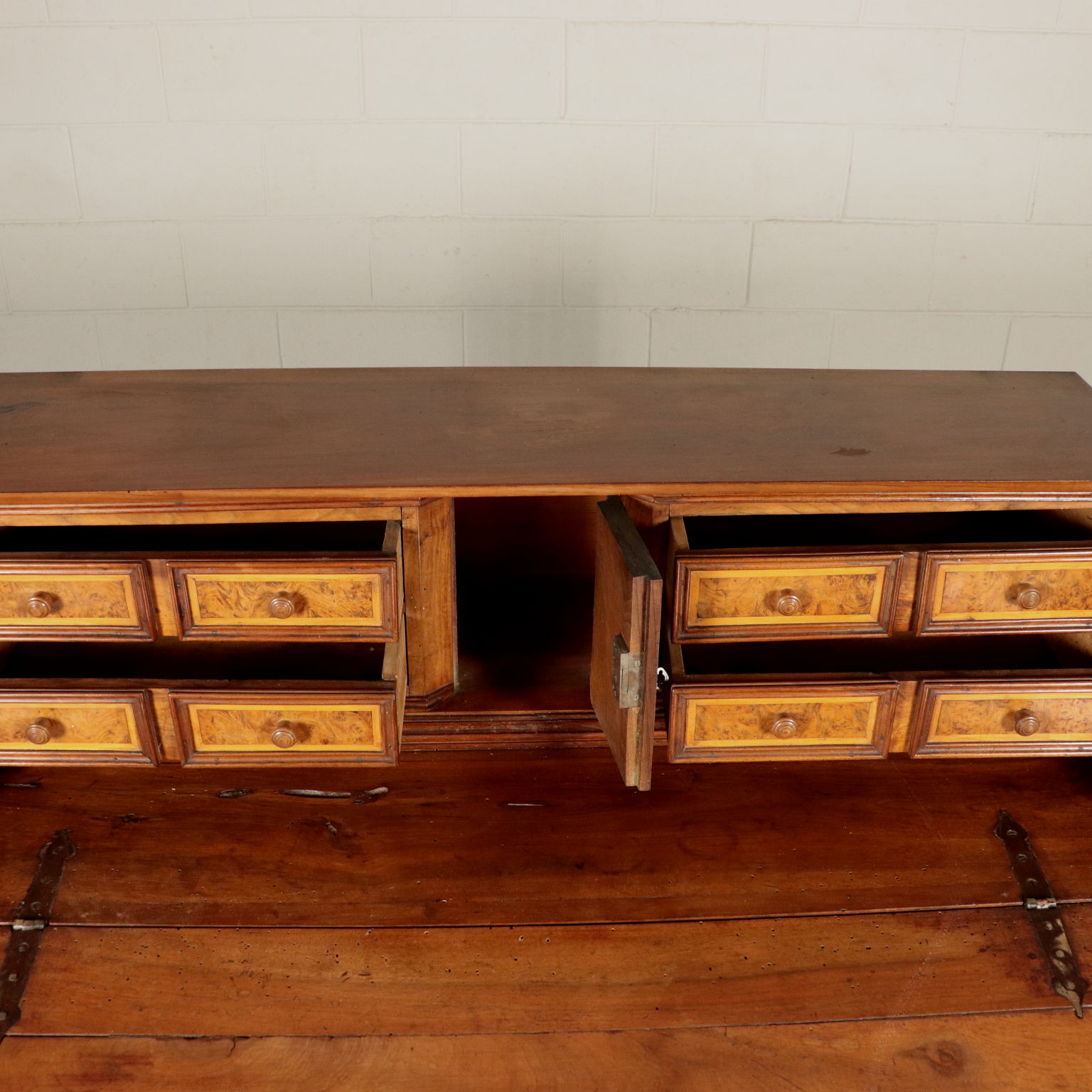 Ribalta lombarda neoclassica, sorretta da quattro piedini tronco-piramidali, stretti da un collare nella parte superiore, sul fronte presenta tre cassetti più uno, dalle dimensioni ridotte e che funge da appoggio per l'anta apribile a ribalta. Questa cela uno scarabattolo con cassetti e segreti. In noce, presenta cornicette ebanizzate che delimitano riserve, sul fronte intarsiate in acero con motivi fitomorfi. La ribalta è stata rimaneggiata nelle parti interne, come nei fianchi e nei cassetti di cui sono stati rifatti gli interni.