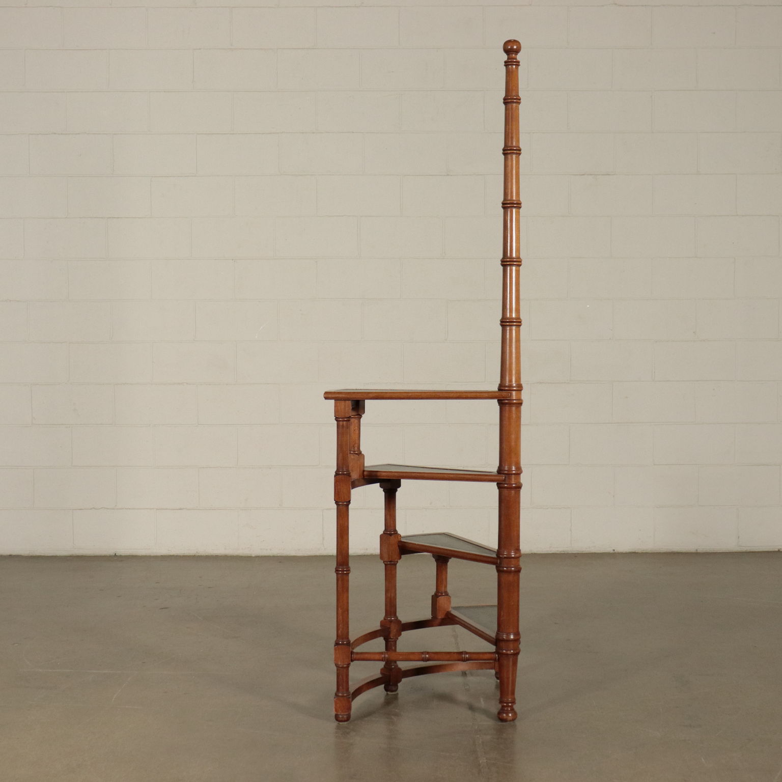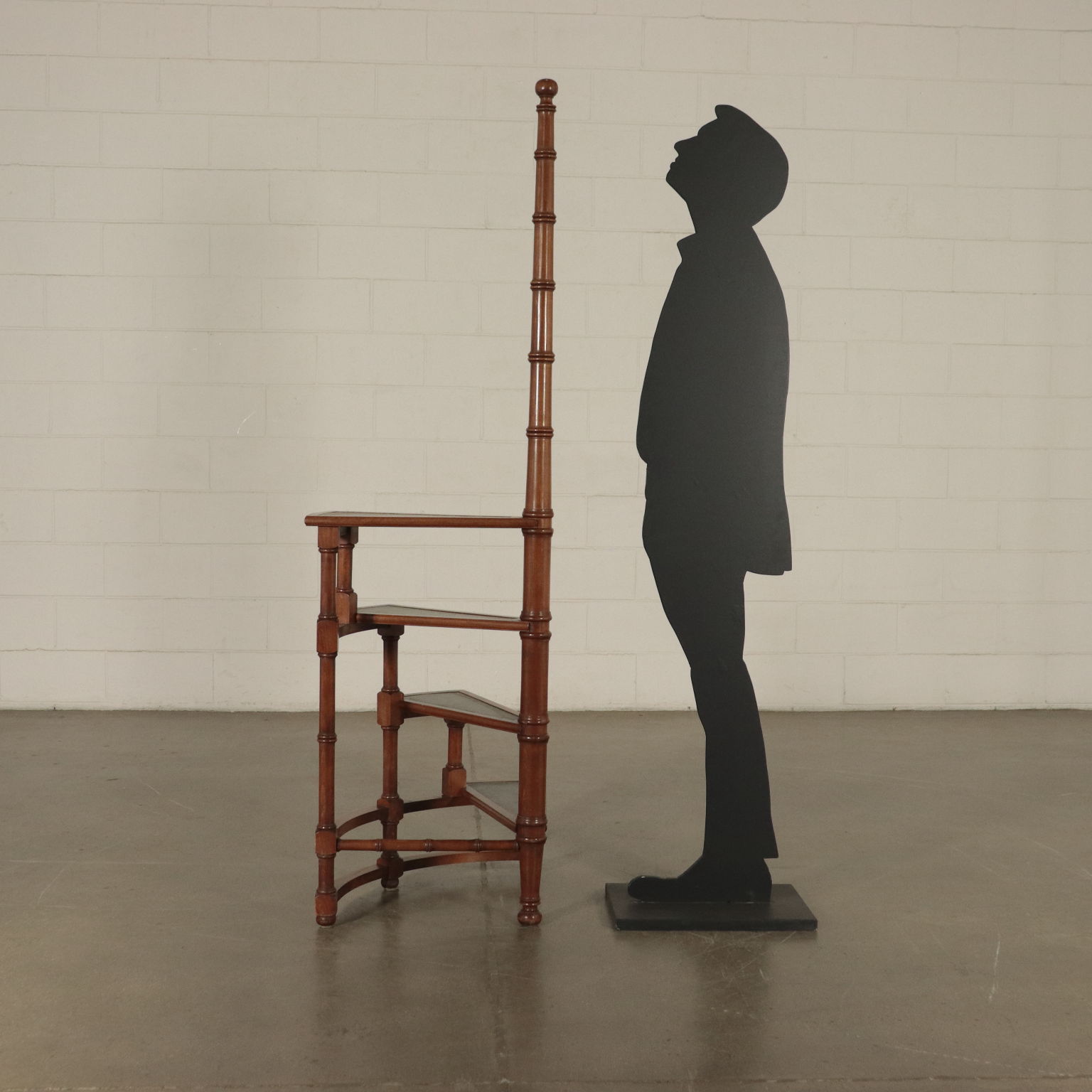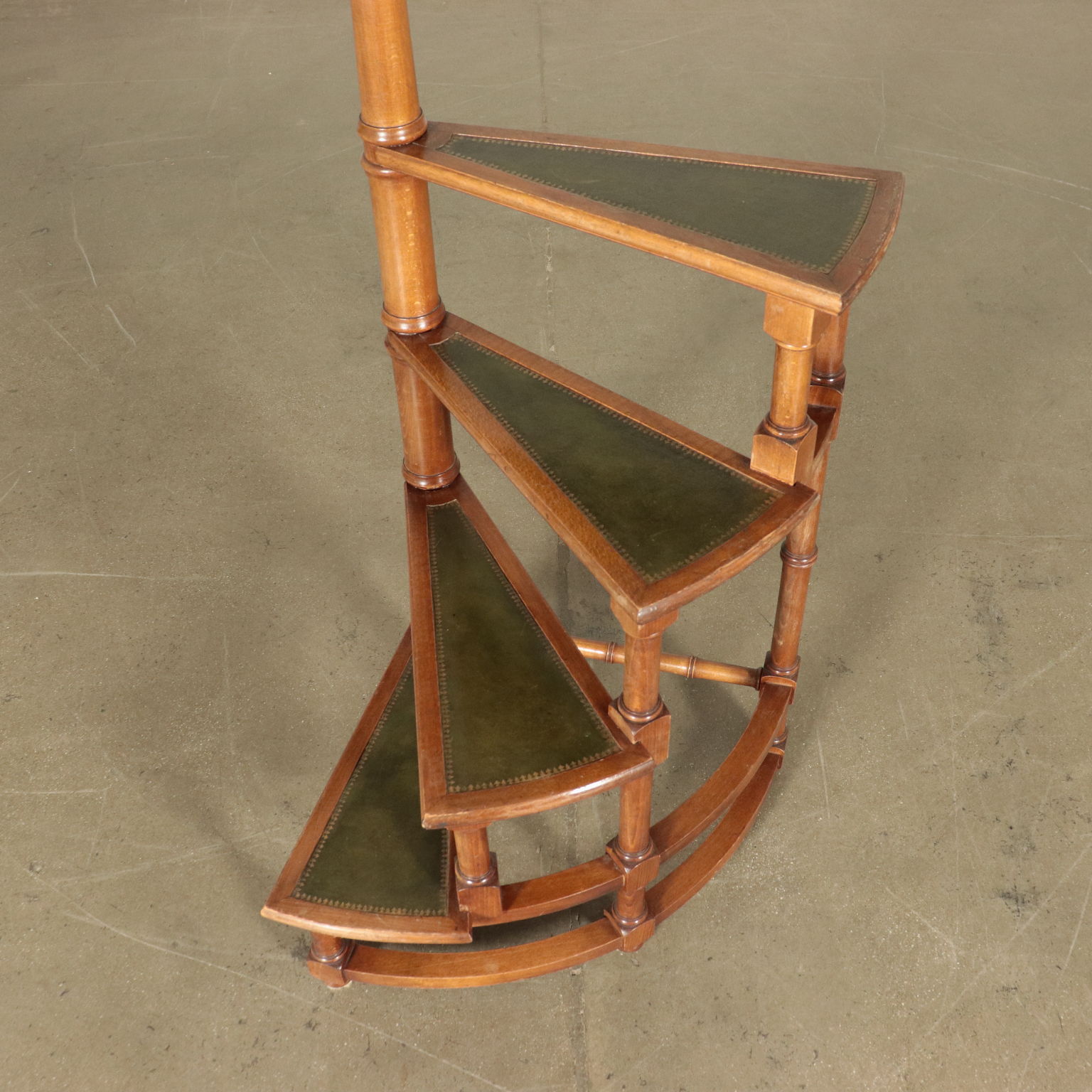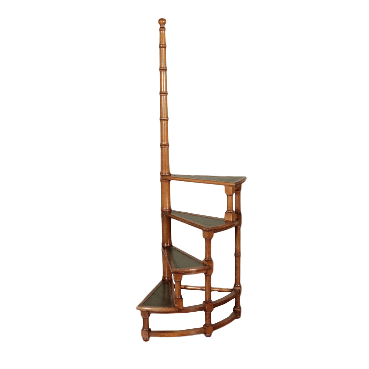 Scaletta da biblioteca inglese, in noce, le pedate presentano un inserto in marocchino.