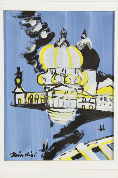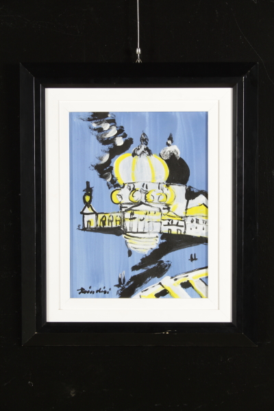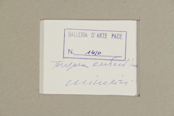 Tempera su carta. Firma in basso a sinistra. Timbro e cartiglio di registrazione al repertorio del catalogo generale della Galleria d'Arte Pace col No 4644. Dichiarazione d'autenticita' dell'archivio della Galleria Pace (MI) su foto.