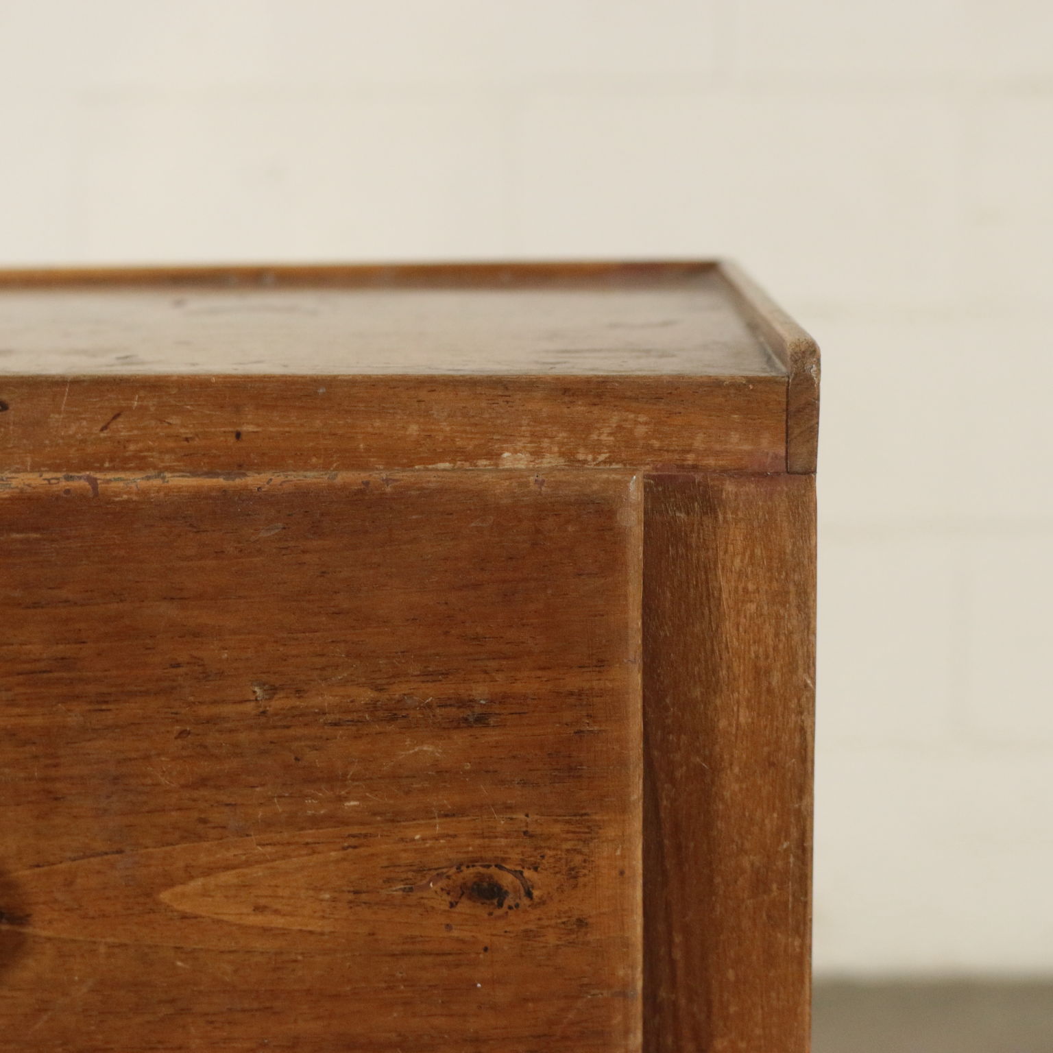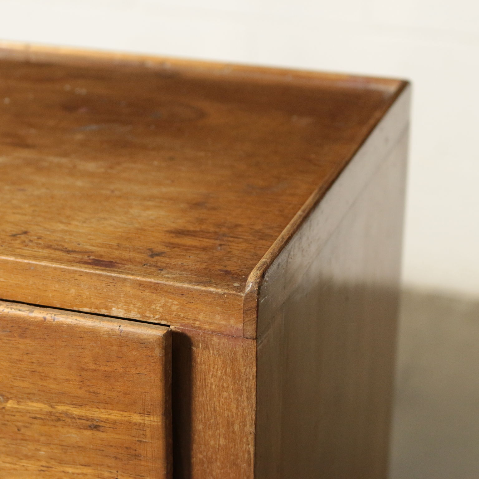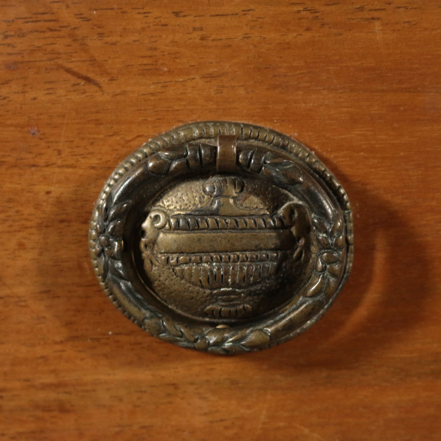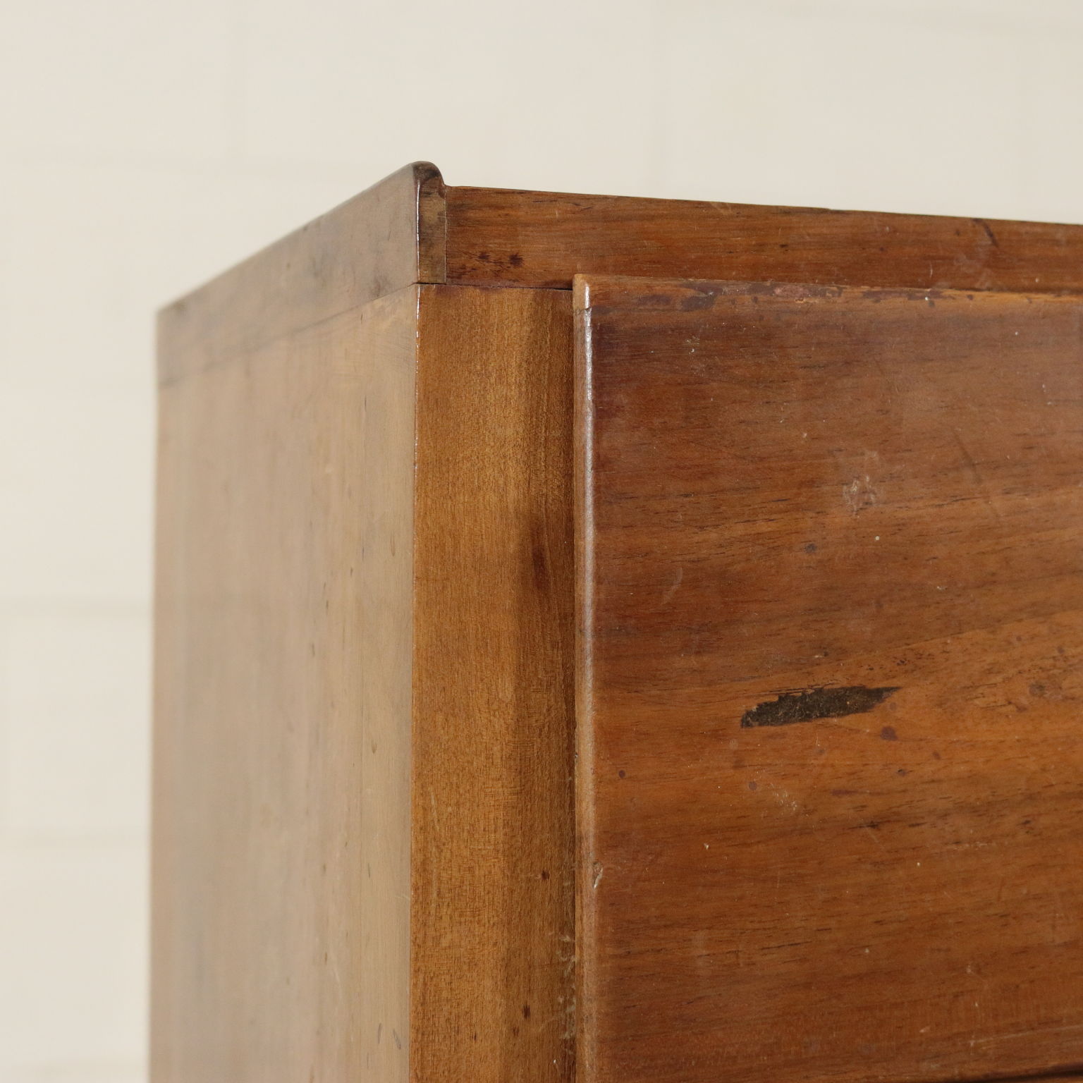 Coppia di comodini in stile direttorio, sorretti da sottili gambe tronco-piramidali, sul fronte presentano una coppia di cassetti sormontati; in noce, con maniglieria bronzea. Realizzati con parti di mobili antichi.
