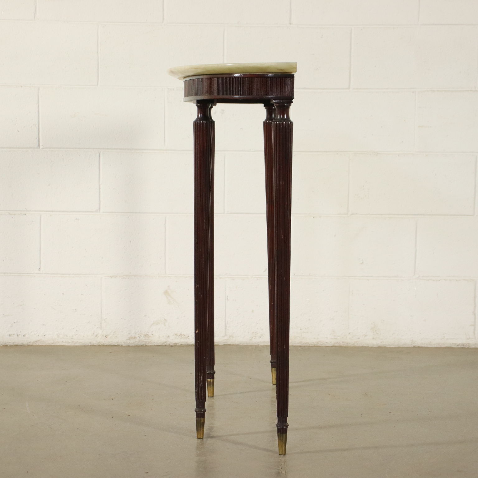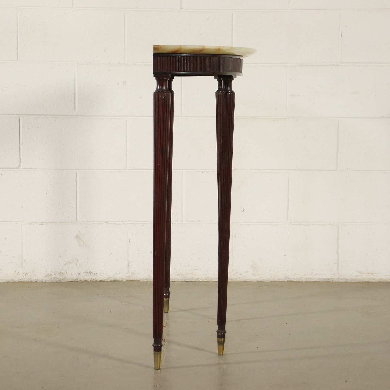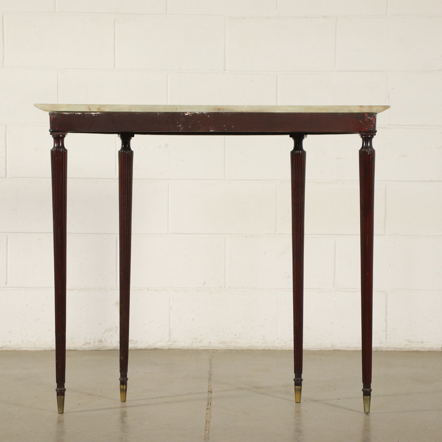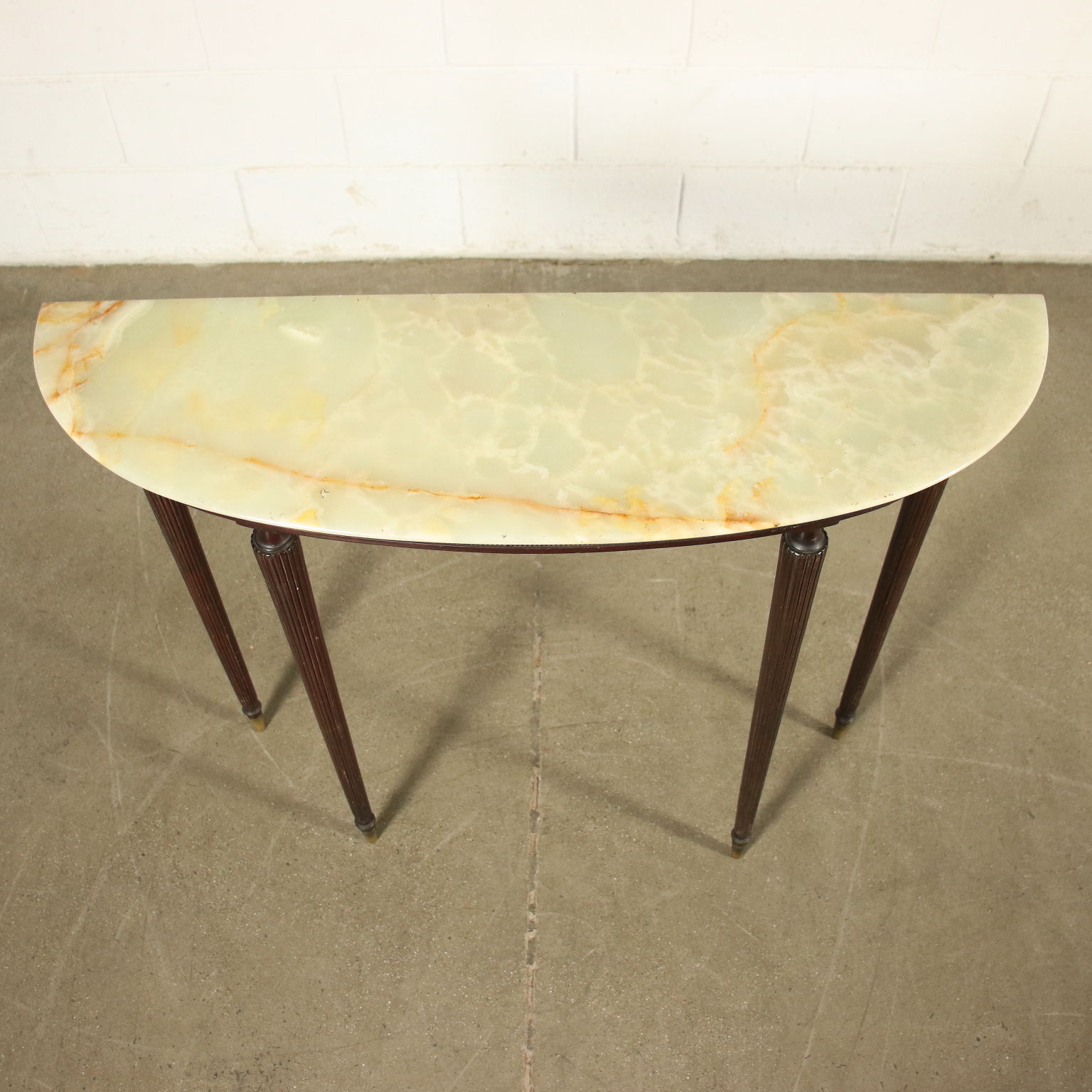 Consolle a muro, legno "ebanizzato", piano in alabastro, puntali in ottone.