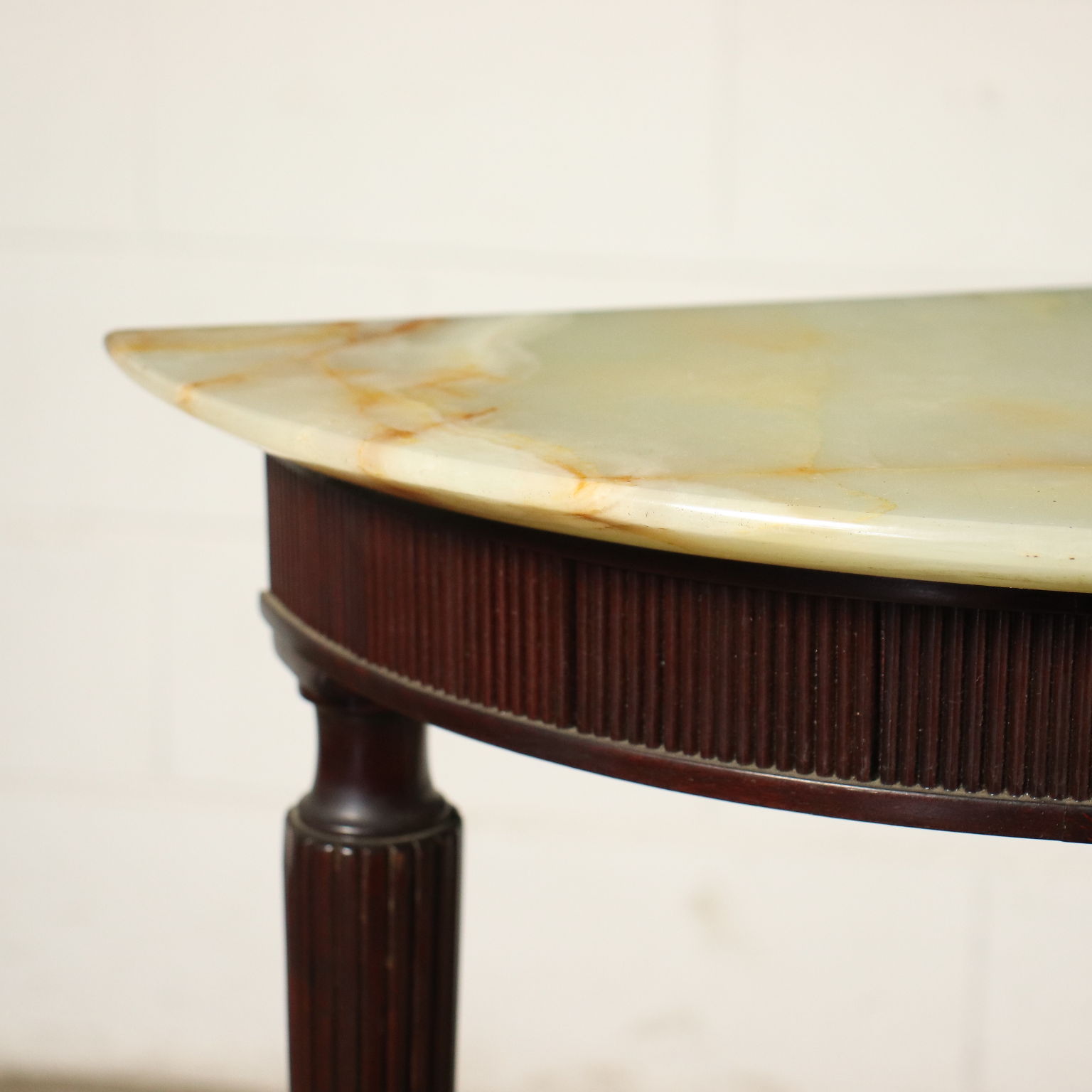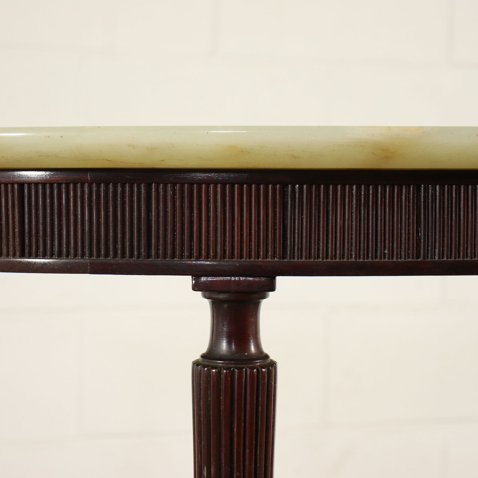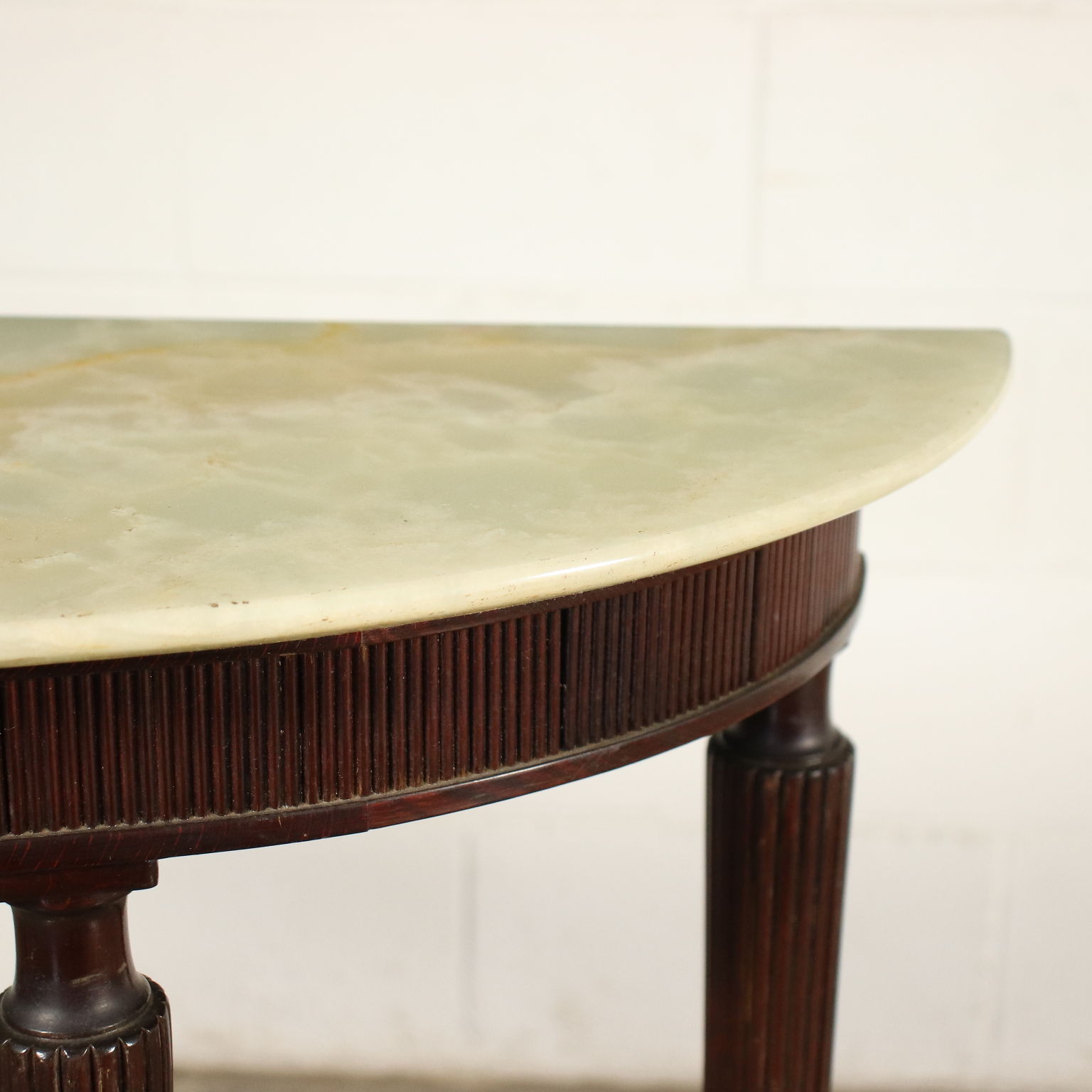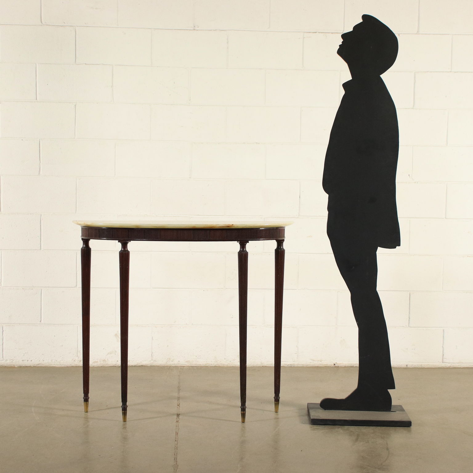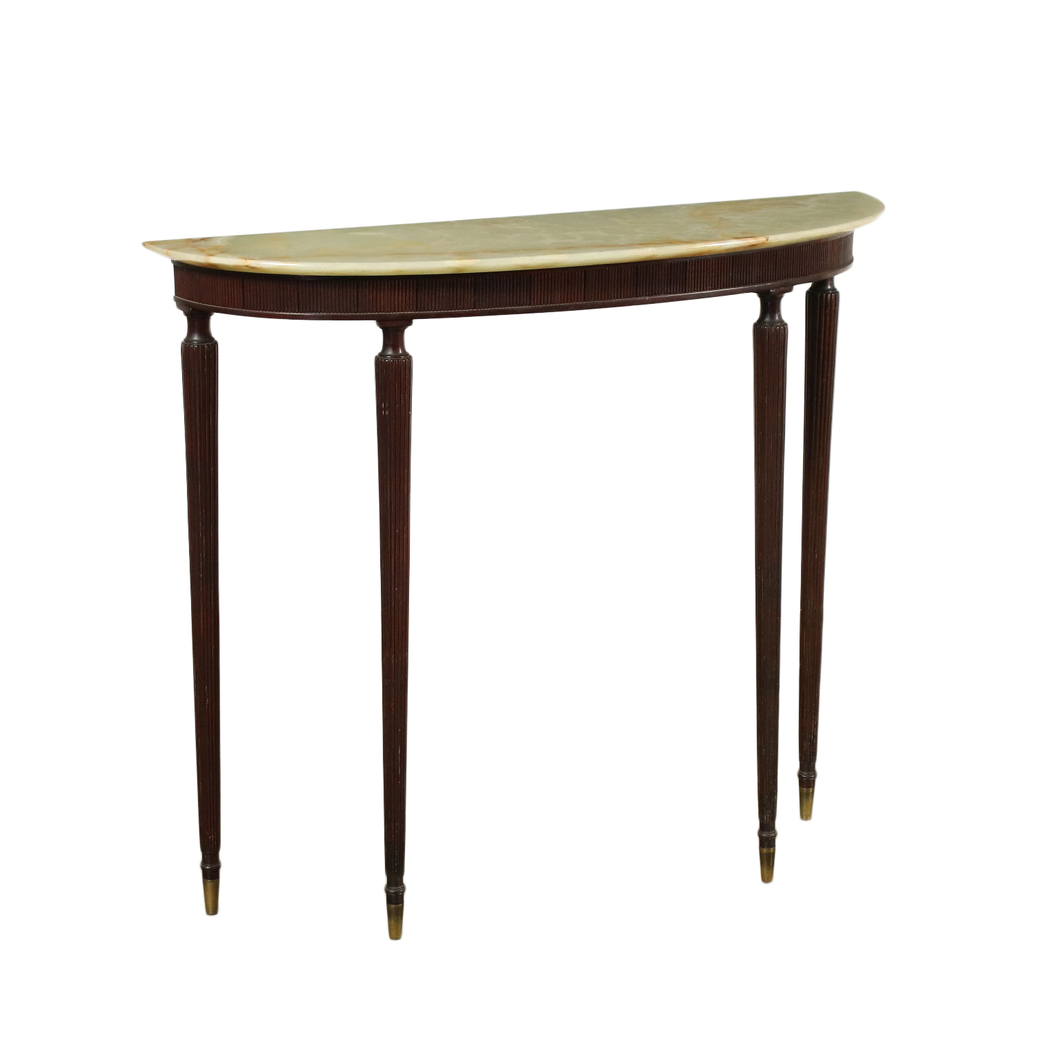 Consolle a muro, legno "ebanizzato", piano in alabastro, puntali in ottone.