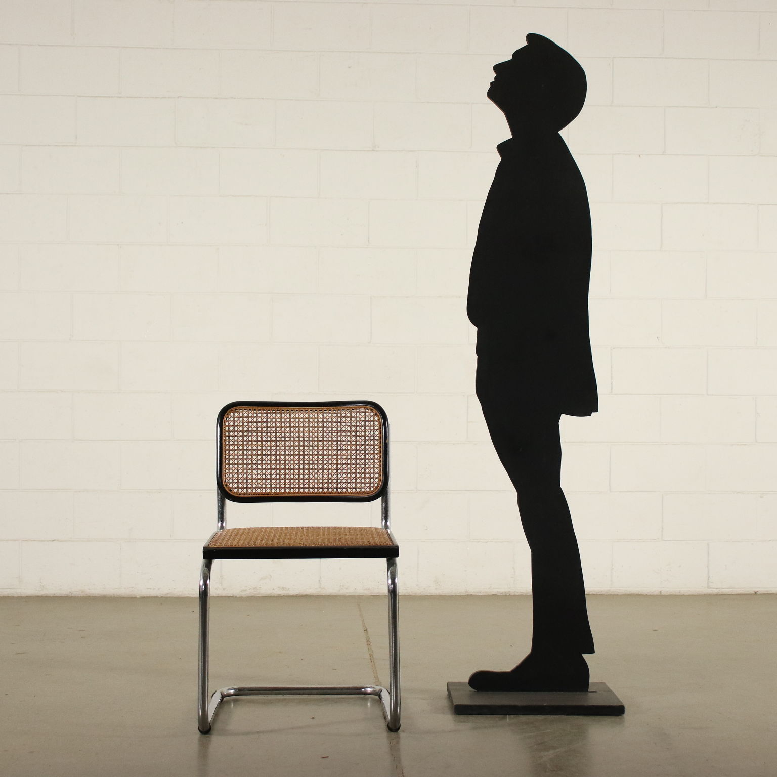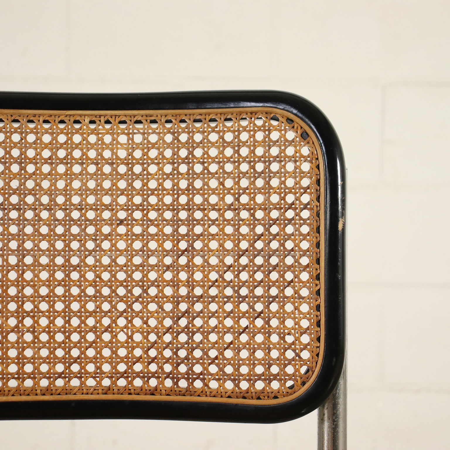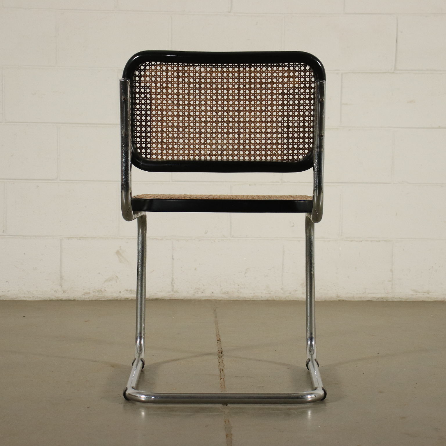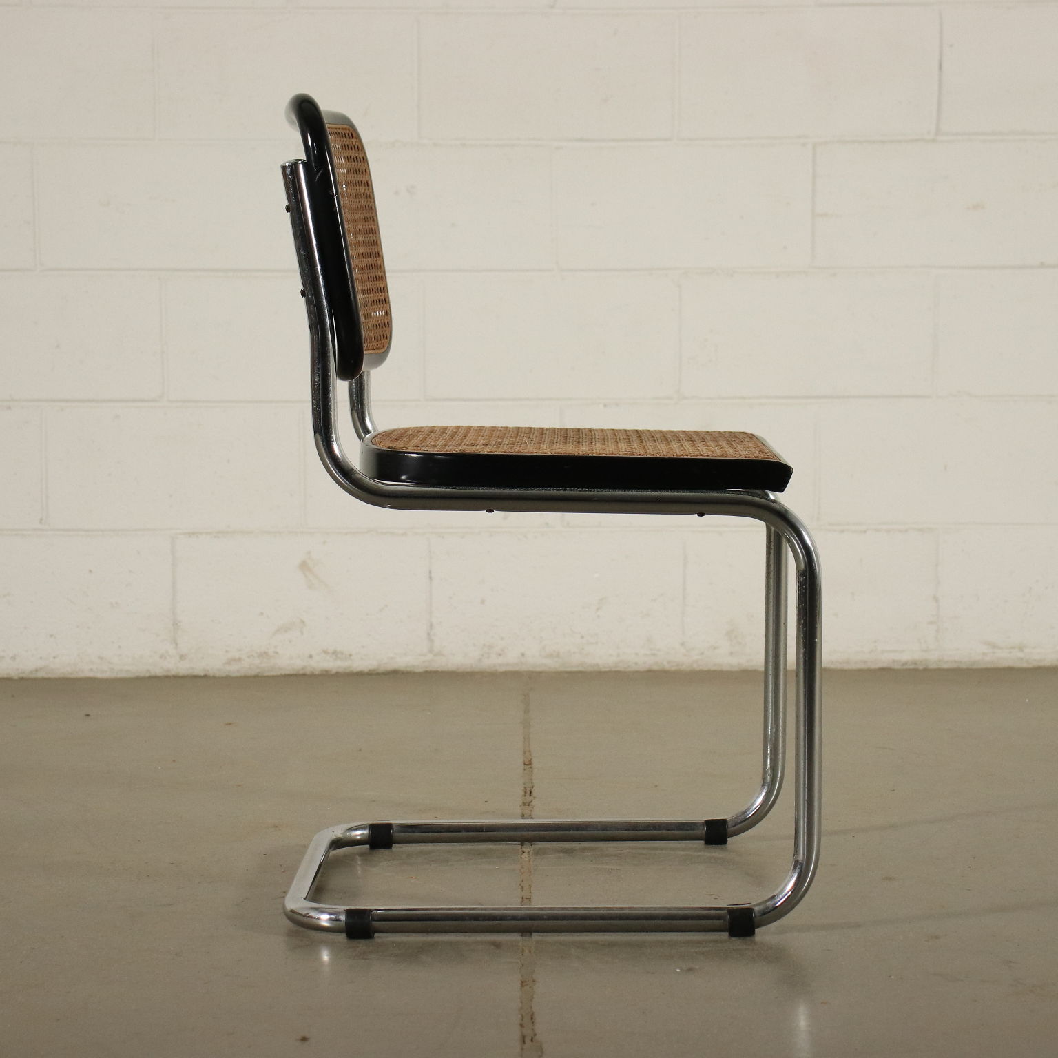 Gruppo di 6 sedie nello stile di Marcel Breuer. Tubolare in metallo cromato, telaio in legno e paglia di Vienna.