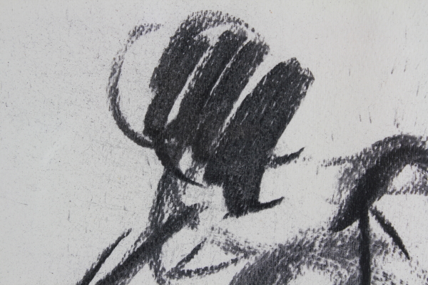 Carboncino su carta. Firma e data in basso a destra. Cambiata cornice rispetto alla foto.
