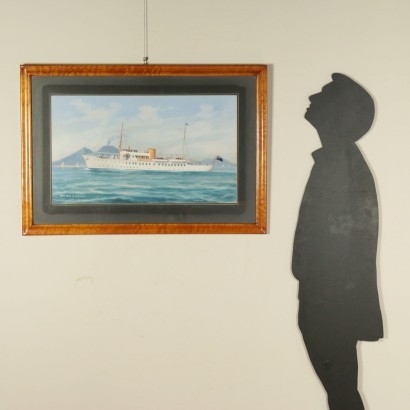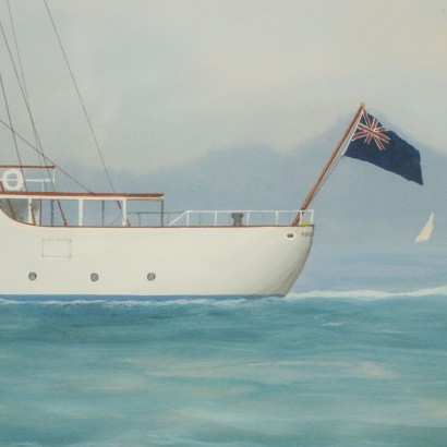 Gouache su carta. Firmato in basso a destra. A sinistra il nome della nave. La sigla R.T.Y.C. ne definisce l'appartenenza al Royal Thames Yacht Club il più antico circolo velico della Gran Bretagna, fondato nel 1775, anche se prese il nome attuale solo nel 1830, e il cui "commodoro", ovvero il presidente del circolo, è tradizionalmente un membro della famiglia reale. Luca Papaluca si distinse per i suoi ritratti (soprattutto gouache) di yacht importanti, navi a vapore in navigazione, spesso collocate nel Golfo di Napoli, ove visse e lavorò, con il Vesuvio di sfondo. L'opera è presentata in cornice.
