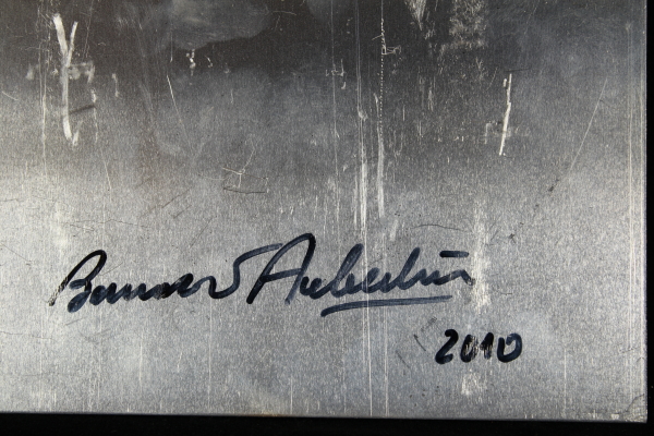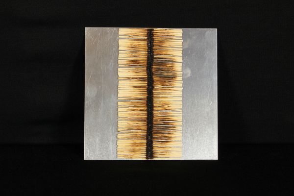 Fiammiferi bruciati su lamiera. Firma e data al retro. Senza cornice.