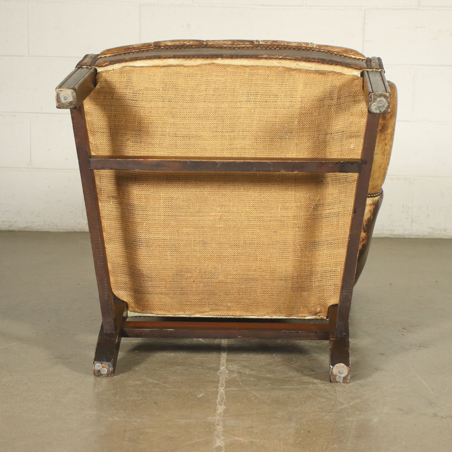 Poltrona Antica Bergere con Poggiapiedi '900 Legno di Mogano Pelle