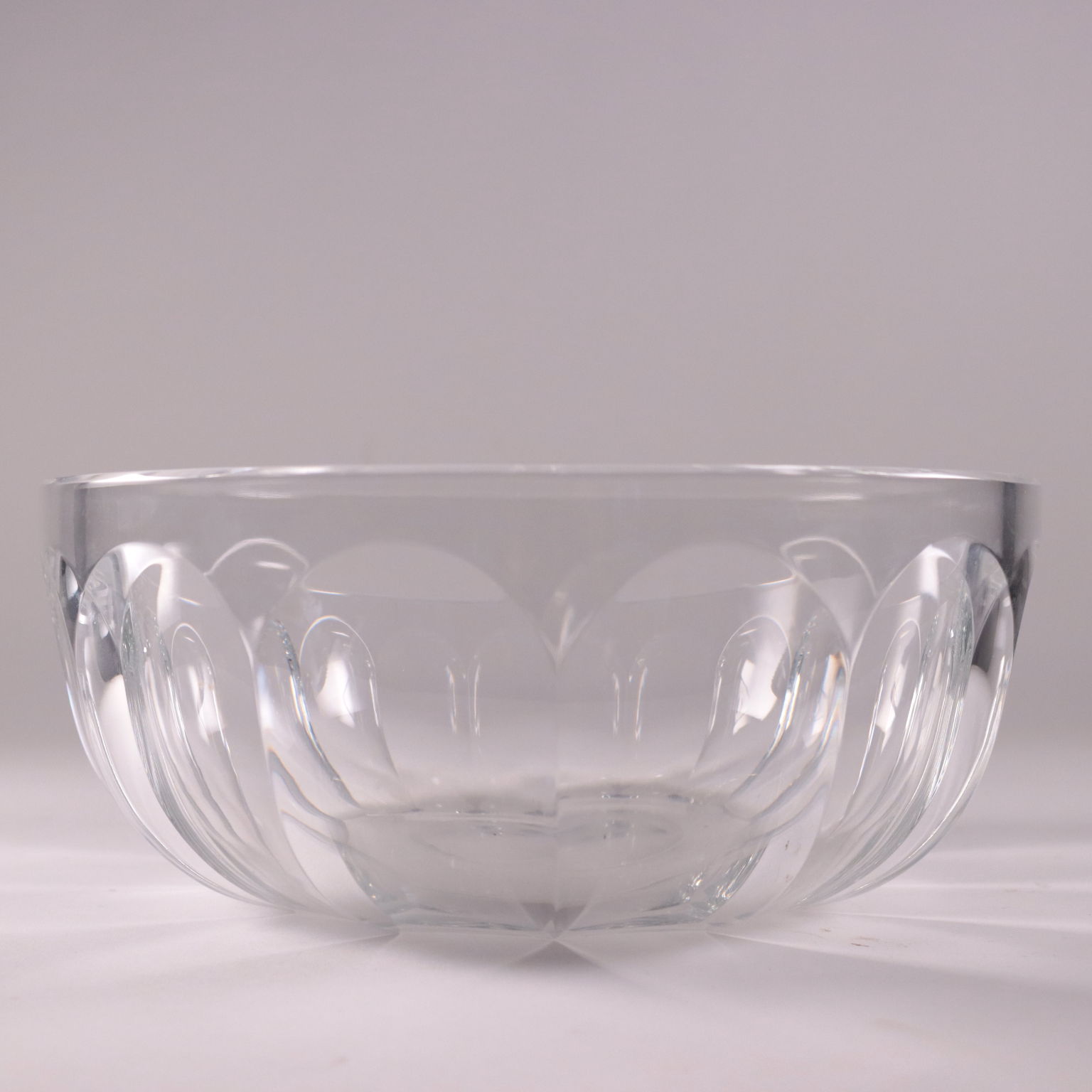 Ciotola in cristallo molato. Il taglio sfaccettato e la purezza del cristallo creano dei piacevoli giochi di luce. Marchio della manifattura sotto la base.