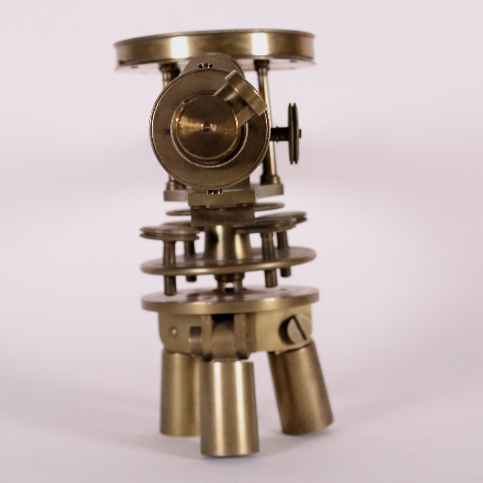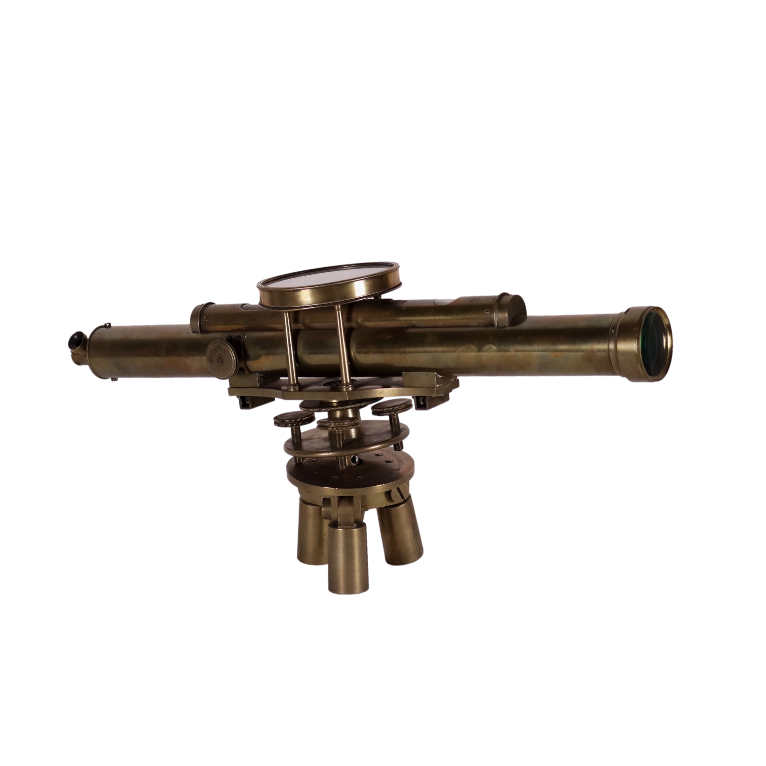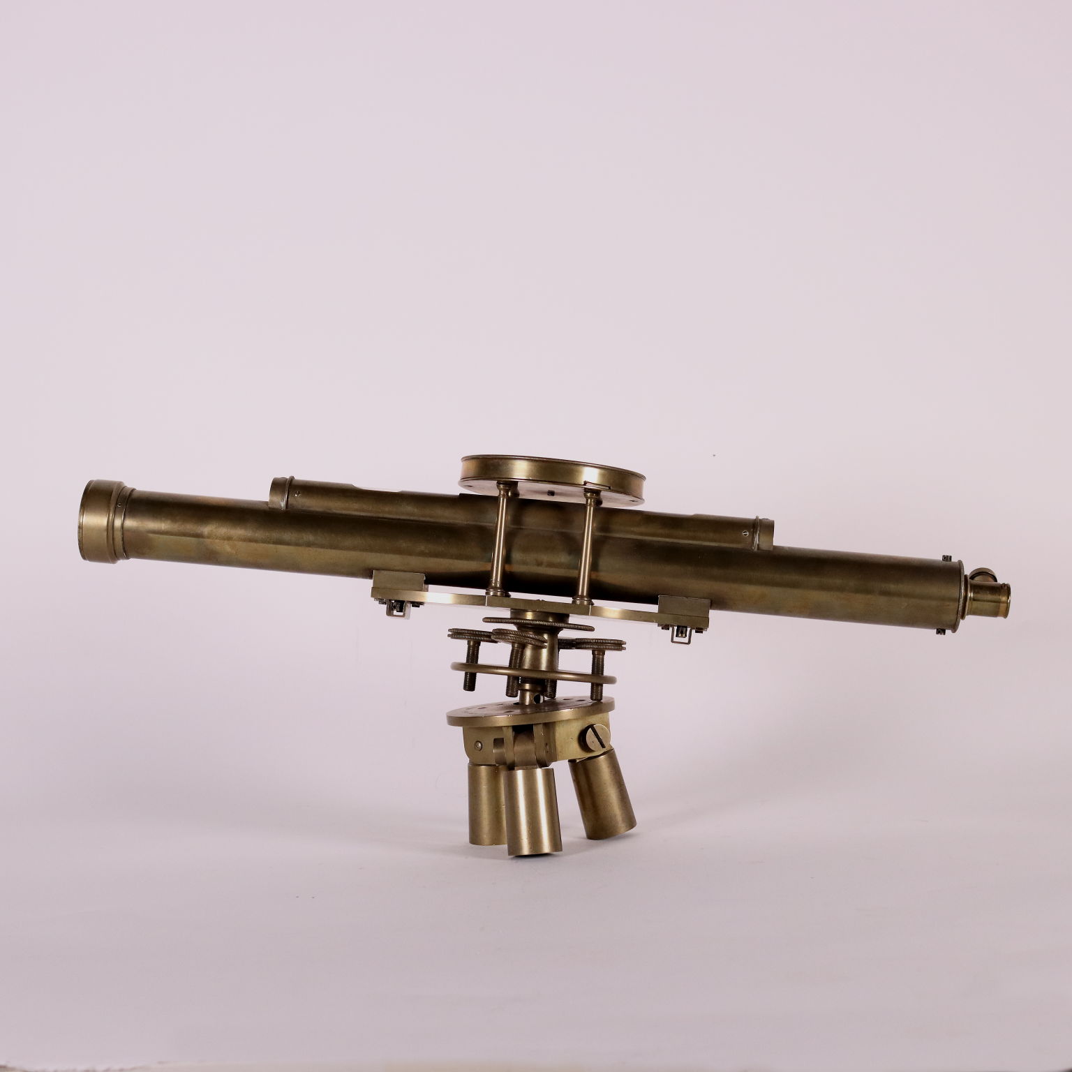 Teodolite in ottone, composto da bussola, mirino telescopico e livella, marchiato “Troughton London”. Edward Troughton fu tra i migliori produttori di strumenti scientifici, di navigazione, rilevamento e astronomici. A seguito della morte del fratello maggiore e socio, a partire dal 1826 assunse William Simms e il nome dell'azienda cambiò in Troughton & Simms.
