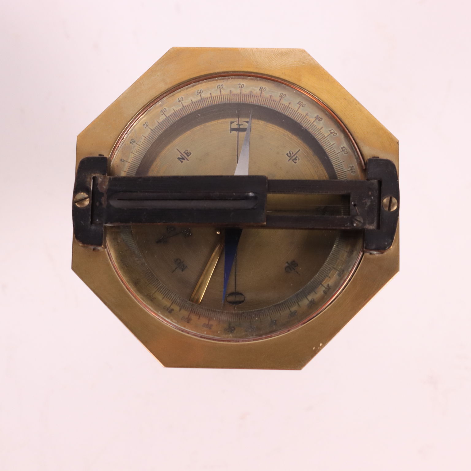 Bussola da geometra in ottone dorato e dipinto di nero sui bracci, sul quadrante firmato “Bougart 35 quai de l'horloge Paris”.
