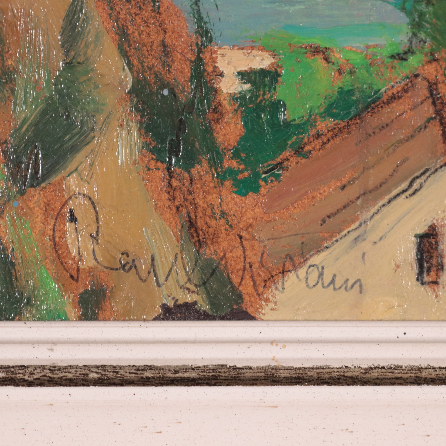 Olio su cartone. Firmato in basso a sinistra. Scrittore e critico d'arte, oltre che pittore, disegnatore e incisore, Raul Viviani si formò artisticamente a Milano, ove esordì molto giovane ottenendo l'apprezzamento della critica. Egli fu prevalentemente paesaggista: pur avvicinandosi alla tecnica divisionista, Viviani pervase i suoi paesaggi di un'intima poesia e di un'atmosfera di sospensione temporale, che conferirono un marchio assolutamente personale alle sue opere. L'opera è presentata in cornice.