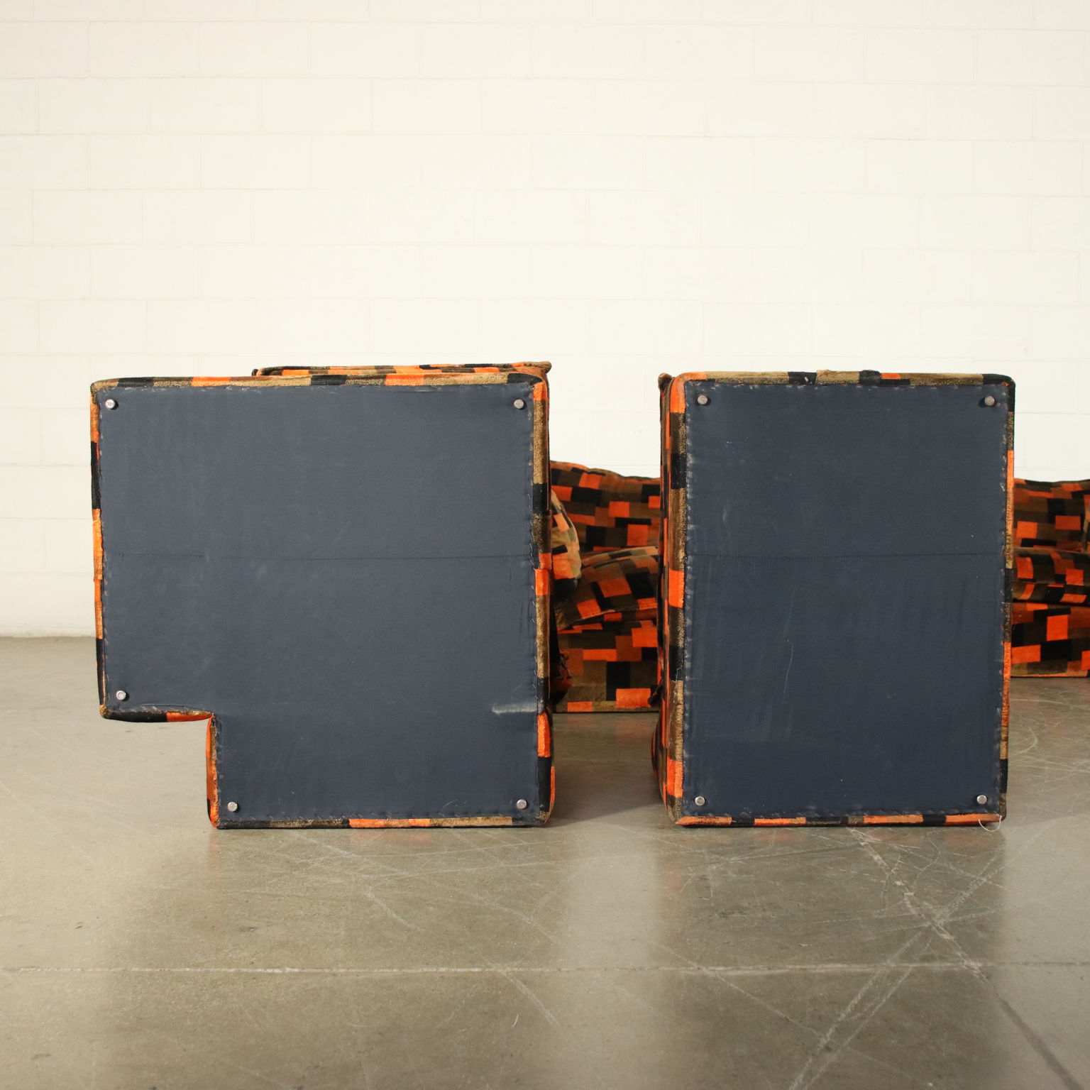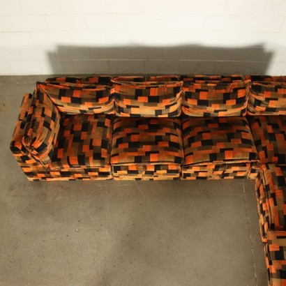 Divano ad angolo componibile, imbottitura in espanso, rivestimento in velluto.