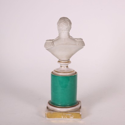 Busto di Napoleone Bonaparte in biscuit posto su colonnina in ceramica. Al centro della colonna, aquila dentro riserva dipinta a mano.