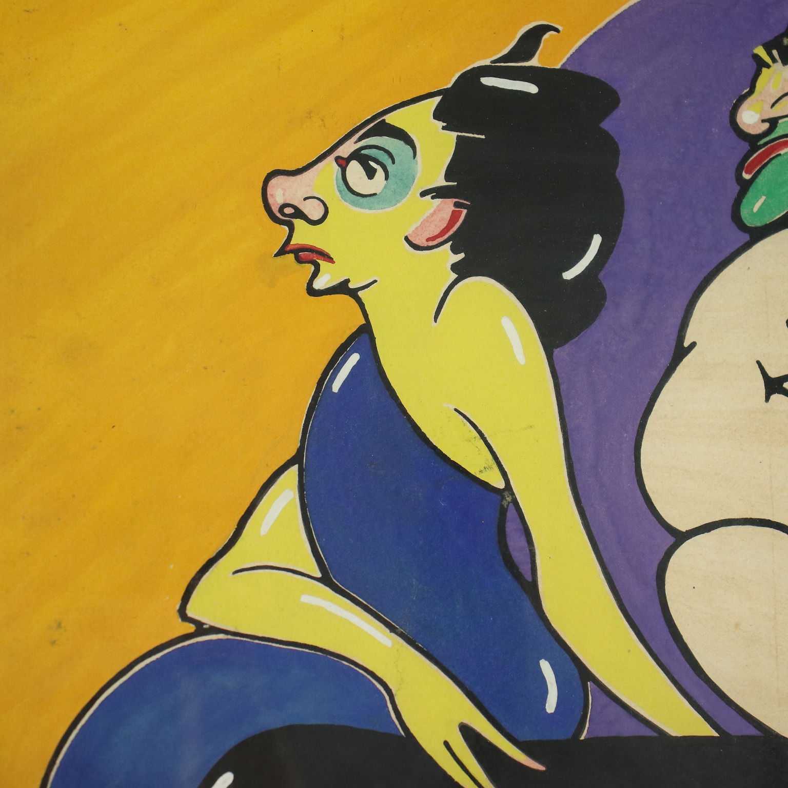 Tempera su carta. Firmata in alto a destra. Luigi Daniele Crespi fu pittore, giornalista e illustratore attivo a Roma dal 1912 al 1940, di cui non si hanno altri dati biografici. Legato al movimento futurista, fu attivo anche nella cartellonistica pubblicitaria e nella scenografia. Le sue eleganti caricature e i suoi disegni satirici furono pubblicati su molte riviste e copertine. In questo disegno il Crespi propone le caricature di due noti personaggi dello spettacolo dell' epoca, Antonio Gandusio (1875 - 1951), che uno dei più interessanti attori comici italiani, sia cinematografici che di teatro, quasi una maschera da commedia dell'arte, e Maria Melato (1885 – 1950) attrice di teatro, radio e cinema. In cornice.