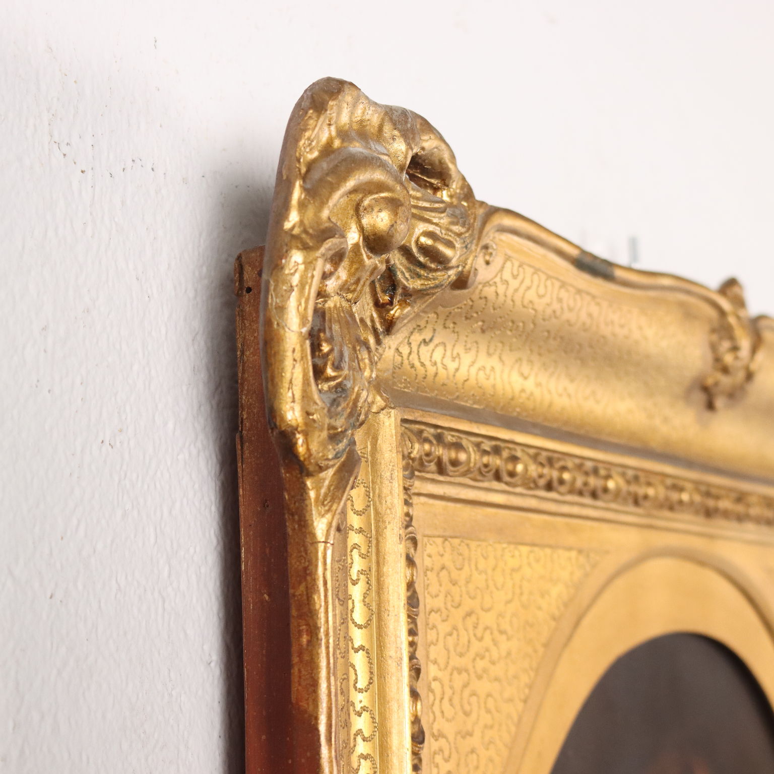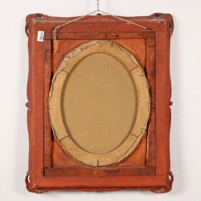 Olio su tela. Scuola lombarda. Ritratto di signora di mezza età, severa e composta.Il dipinto, in buone condizioni, è presentato in cornice dorata coeva, con piccole cadute della doratura.