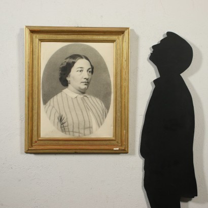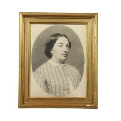 Cornice Antica Umbertina Italia '800 Carboncino Ritratto femminile