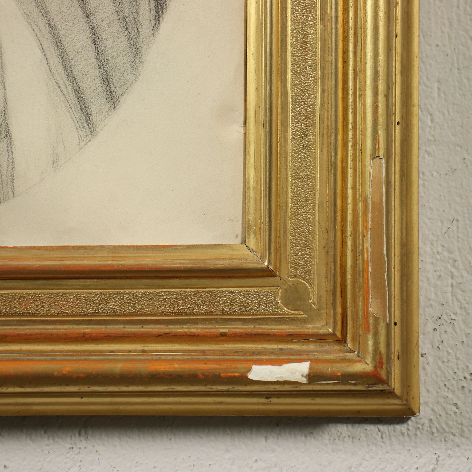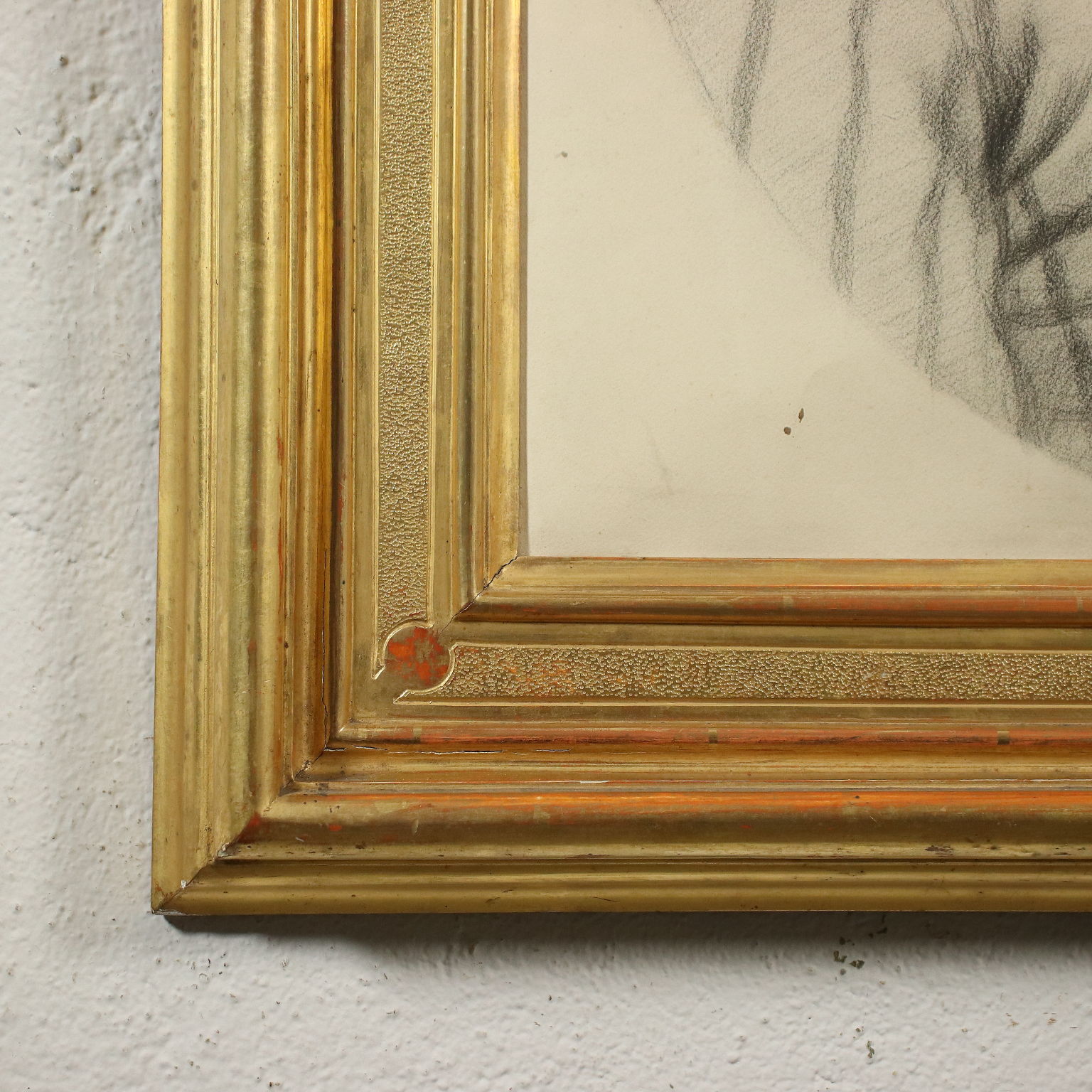 Cornice umbertina, interamente dorata. Presentata con ritratto femminile a carboncino.