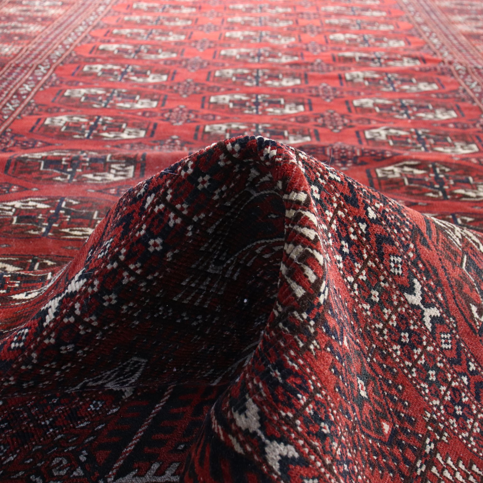 Tappeto Bukhara in lana; nodo fine. Fabbricazione manuale.