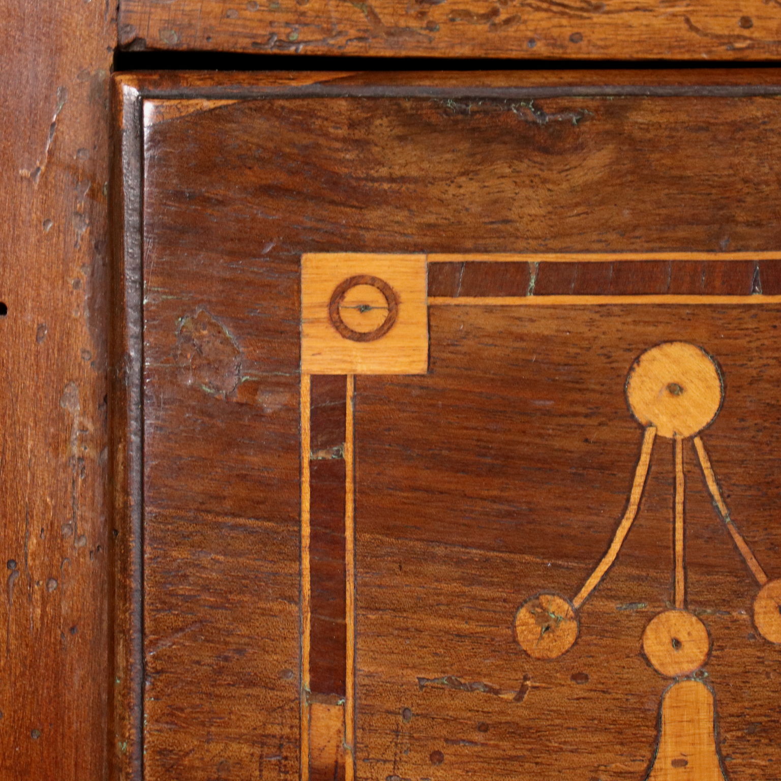 Cassettone neoclassico sorretto da piedini tronco-piramidali, sul fronte presenta tre cassetti sormontati da due cassettini dalle dimensioni inferiore affiancati. In noce, è ornato sul fronte e sui fianchi da intarsi a sottili festoni a collana; interni in abete.