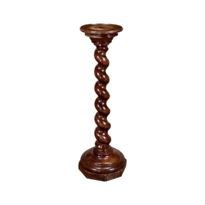Colonna neobarocco, il fusto in olmo è tortile; base e pianetto d'appoggio superiore in cedro.