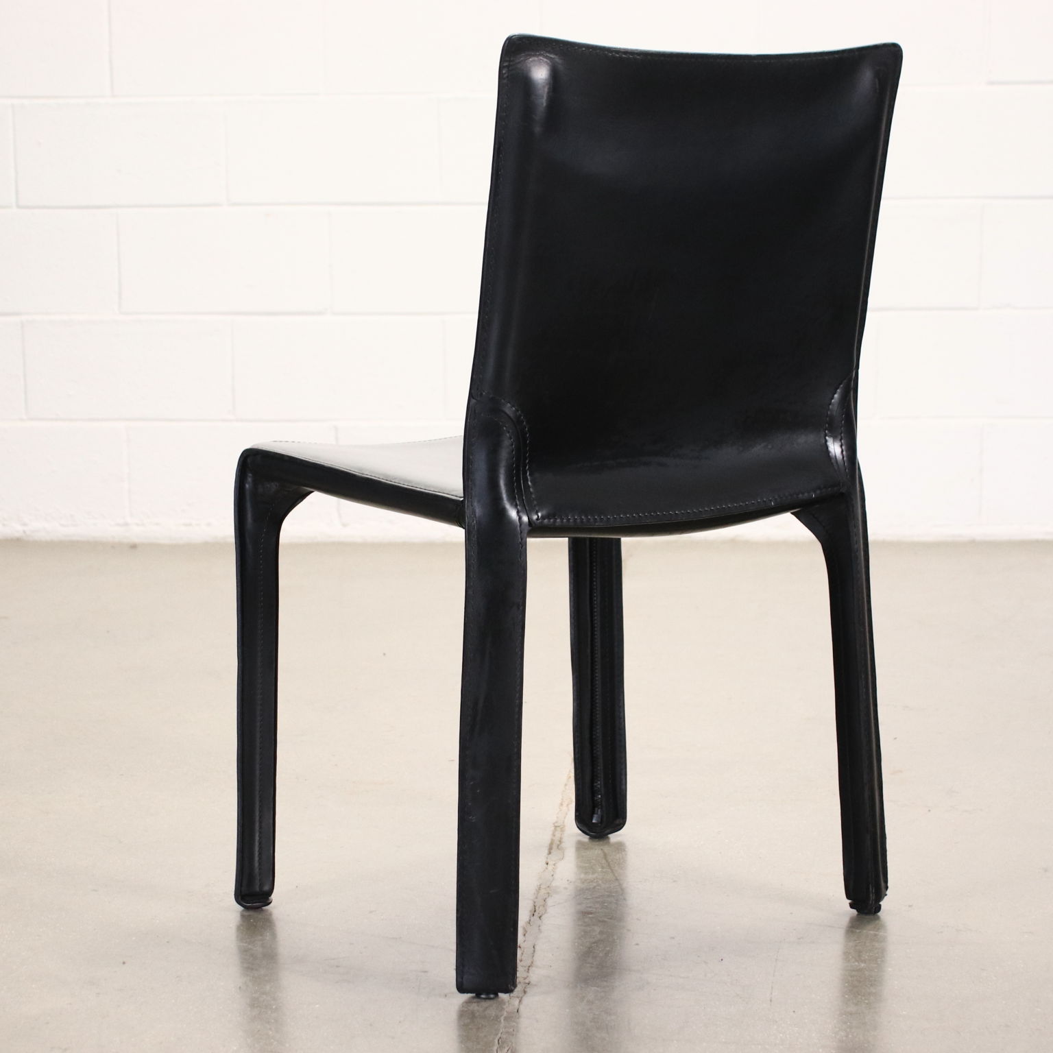 Gruppo di 6 sedie anni '70 '80 'Cab 412' disegnate da Mario Bellini e prodotte da Cassina. Struttura in metallo con rivestimento in cuoio.