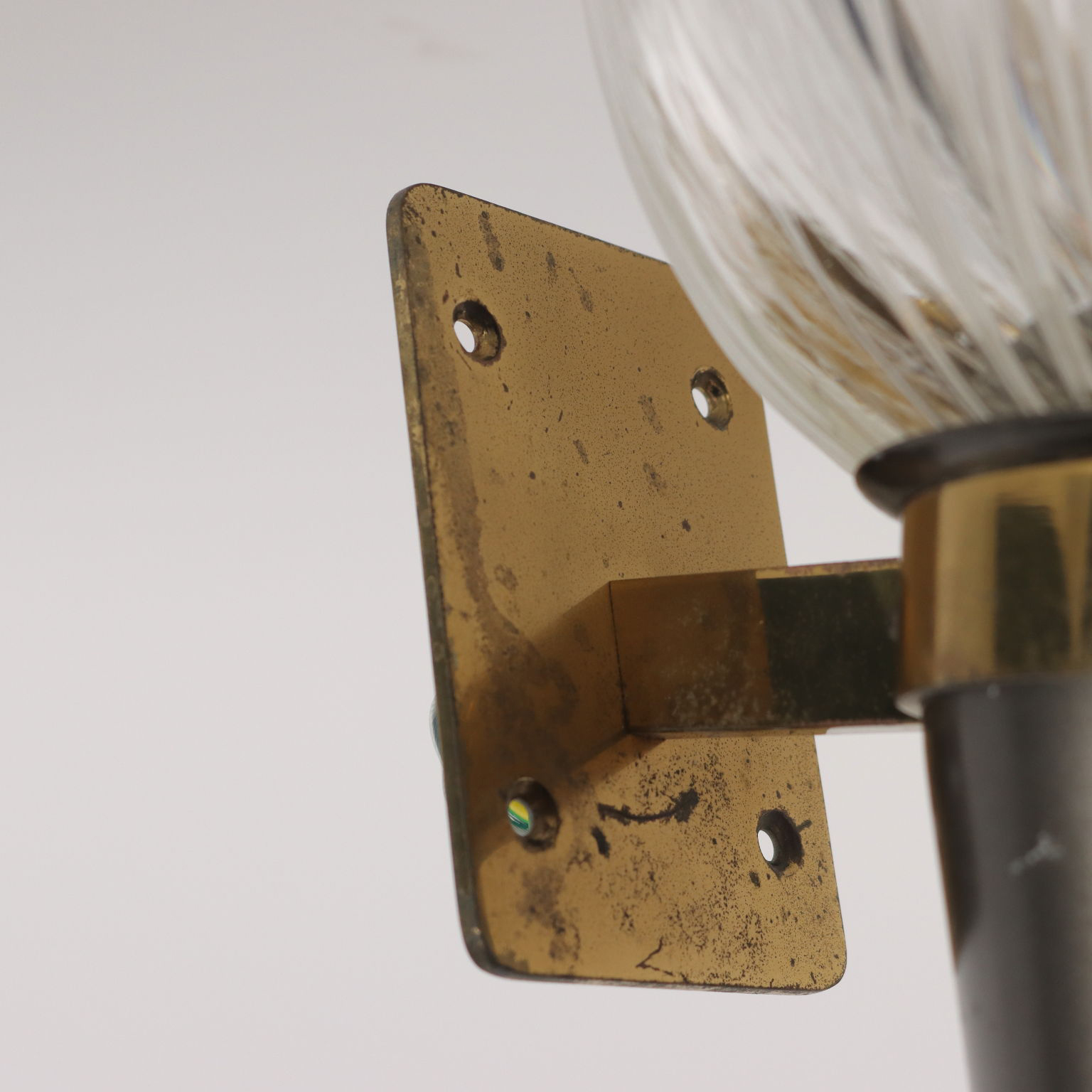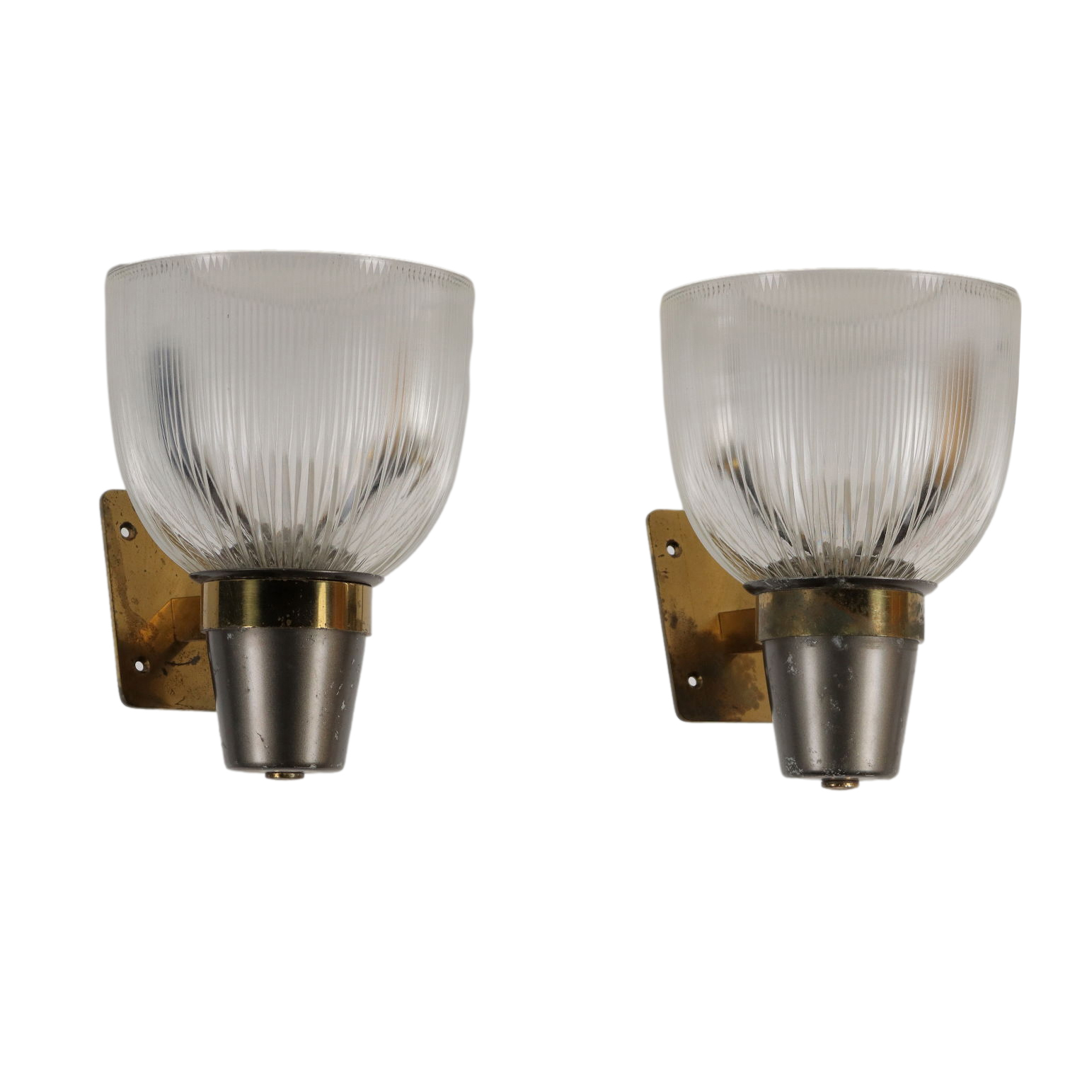 Coppia di lampade da parete in ottone, metallo e vetro zigrinato a campana, disegnate da Ignazio Gardella e prodotte da Azucena a partire dagli anni '60.