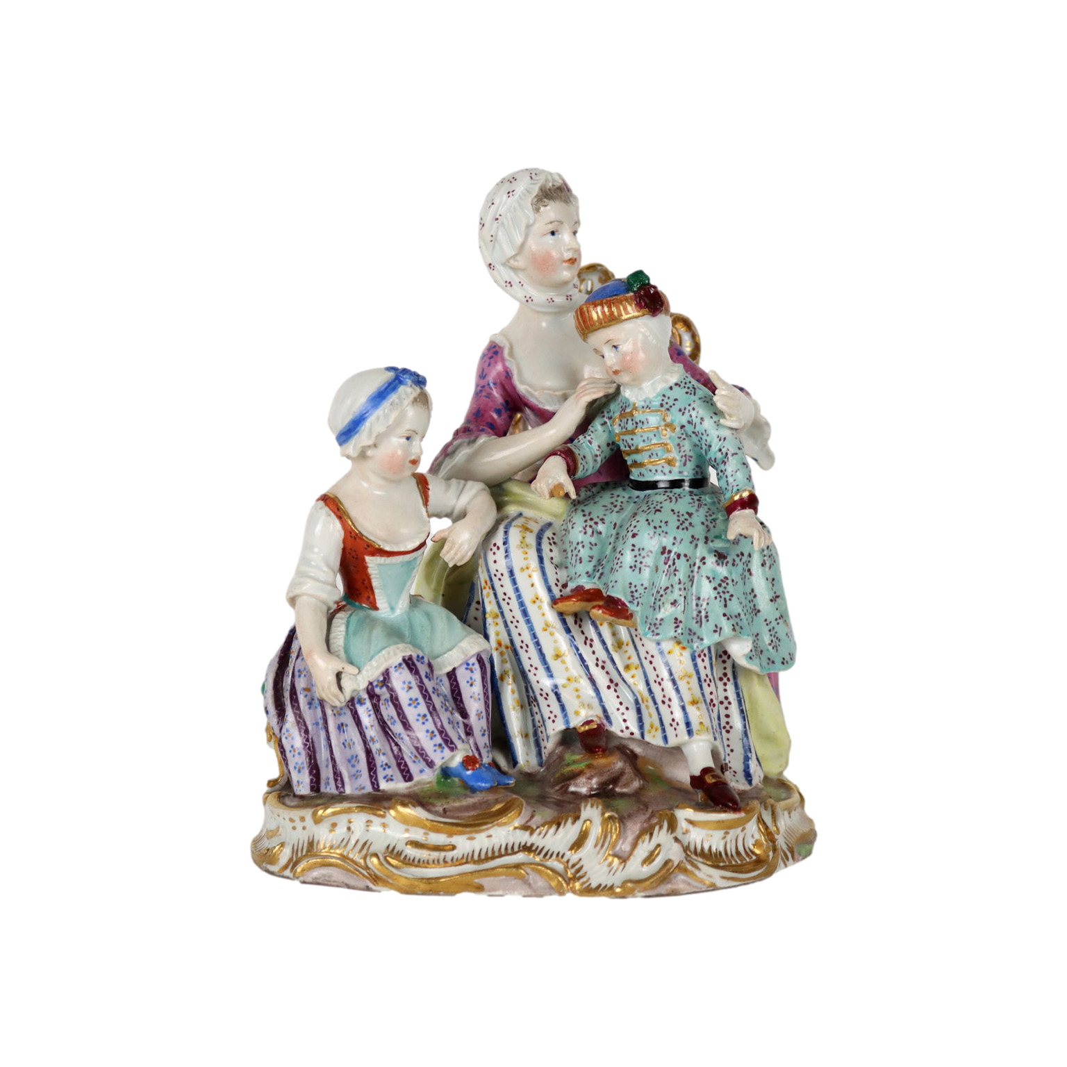 Gruppo di figure in porcellana di Meissen. Marchio della manifattura sotto la base.