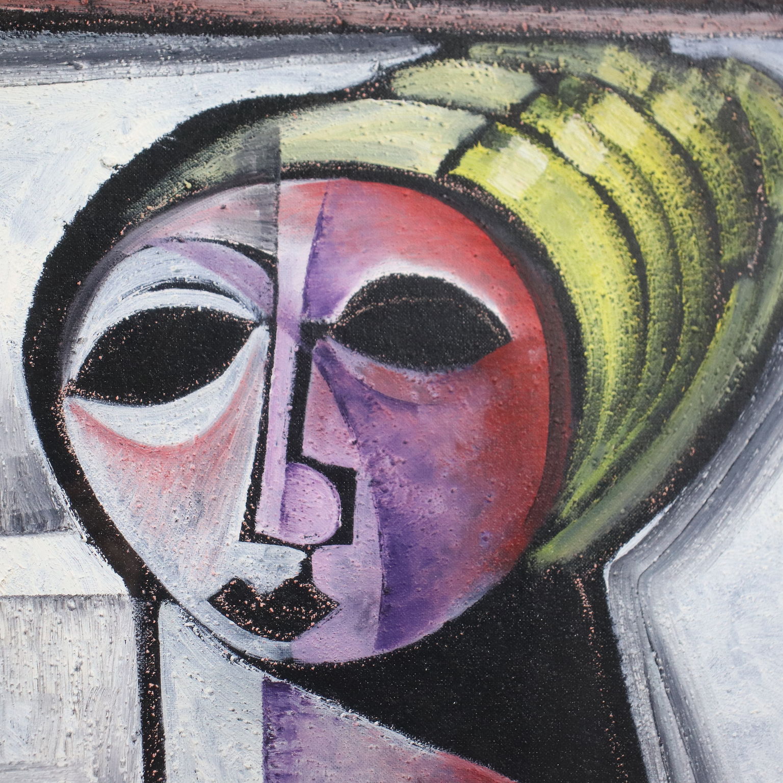 Olio su sabbia applicata a tela. Firmato e datato in basso a destra. Al retro etichetta dell'artista con i dati dell'opera (titolo, tecnica, misure, data) e timbro di Galleria di provenienza. Vittorio Maria di Carlo è nato a San Marco in Lamis, nel Gargano. E' stato riconosciuto come giovane artista emergente al tempo della "Nuova Figurazione" ed ha riscosso notevole successo in numerose mostre collettive e personali. In seguito, si è stabilito a Milano alternando la residenza lombarda con periodi trascorsi a Manila. L'opera propone una figura femminile che si sventola on un ventaglio rosso, nello stile caratteristico dell'artista, che propone figure realizzate con tratti geometrici e colori brillanti. In cornice.
