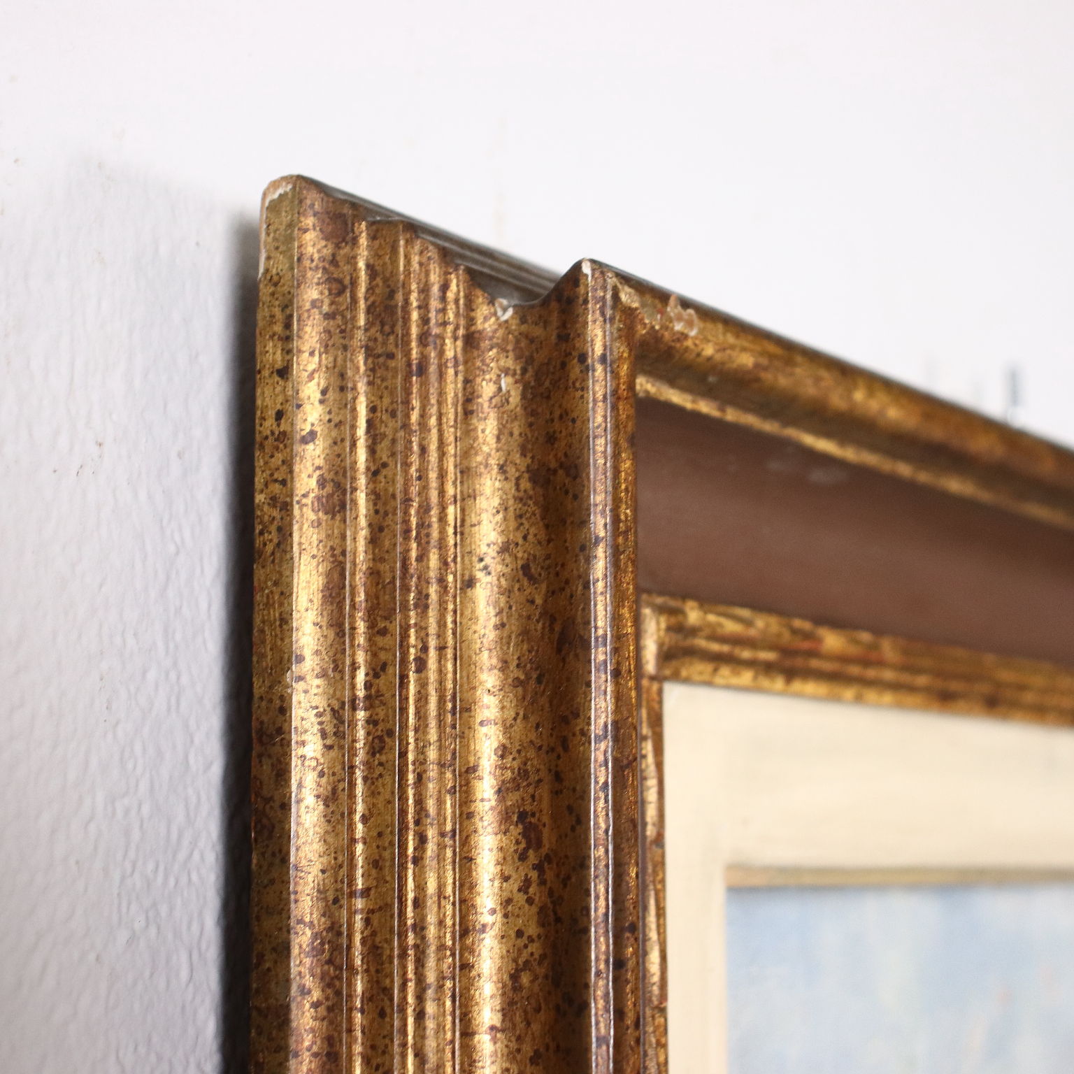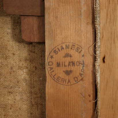 Olio su tela. firmato in basso a destra. Sul retro sono presenti: timbro della Galleria Annunziata di Milano ed etichetta di partecipazione a mostra presso la stessa, ulteriore cartiglio di mostra del 1951 presso la Galleria d'Arte il Grattacielo di Legnano, altri due timbri di ulteriori gallerie d'arte. Il dipinto è corredato di autentica su foto con timbro del Catalogo generale delle opere di A.Del bon e numero di catalogazione. Nato a Milano e formatosi all'Accademia di Brera, come allievo di di Alciati, Angelo Del Bon esordì a Monza nel 1924 alla mostra del ritratto femminile. Nel 1926 partecipò alla seconda mostra del Novecento italiano, ma si discostò subito da tale movimento e dalla sua pesantezza e staticità, ricercando piuttosto una maggiore lievità di tinte e spostando l'interesse dalla forma al colore, per arrivare ad un definizione essenzialmente cromatica del quadro, sulle suggestioni anche del postimpressionismo. Dal 1930, anno in cui fu nuovamente presente alla Biennale di Venezia, iniziò il dialogo con la natura e la descrizione nitida del paesaggio lombardo, puntando a una definizione più chiara e luminosa dello spazio circostante. A partire dal 1932, giunse a un azzeramento totale dei valori di superficie, introducendo ampi squarci di bianco e definendo una sua tecnica peculiare, che prevedeva l'applicazione sulla tela di un consistente strato di bianco di zinco, procedendo successivamente con impasti di colore puro e raschiature per lasciar emergere la preparazione dal fondo. Il Del Bon ottenne opere di una chiarezza e luminosità assolute, accentuate dall'uso di tinte pastello, che dal 1933 in poi caratterizzarono i suoi quadri. Dipinse prevalentemente paesaggi lombardi; dal 1941 iniziò la serie delle nature morte e dei fiori. Nel 1940 costituì con l'amico Grossetti la galleria Annunciata, alla quale il Del Bon diede in esclusiva tutta la sua produzione. L'opera è presentata in cornice in stile.