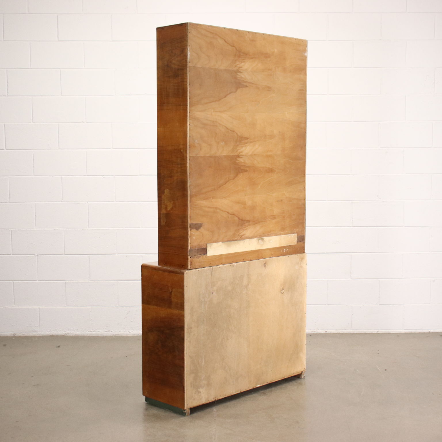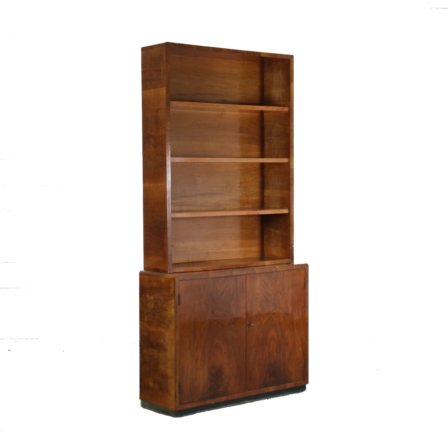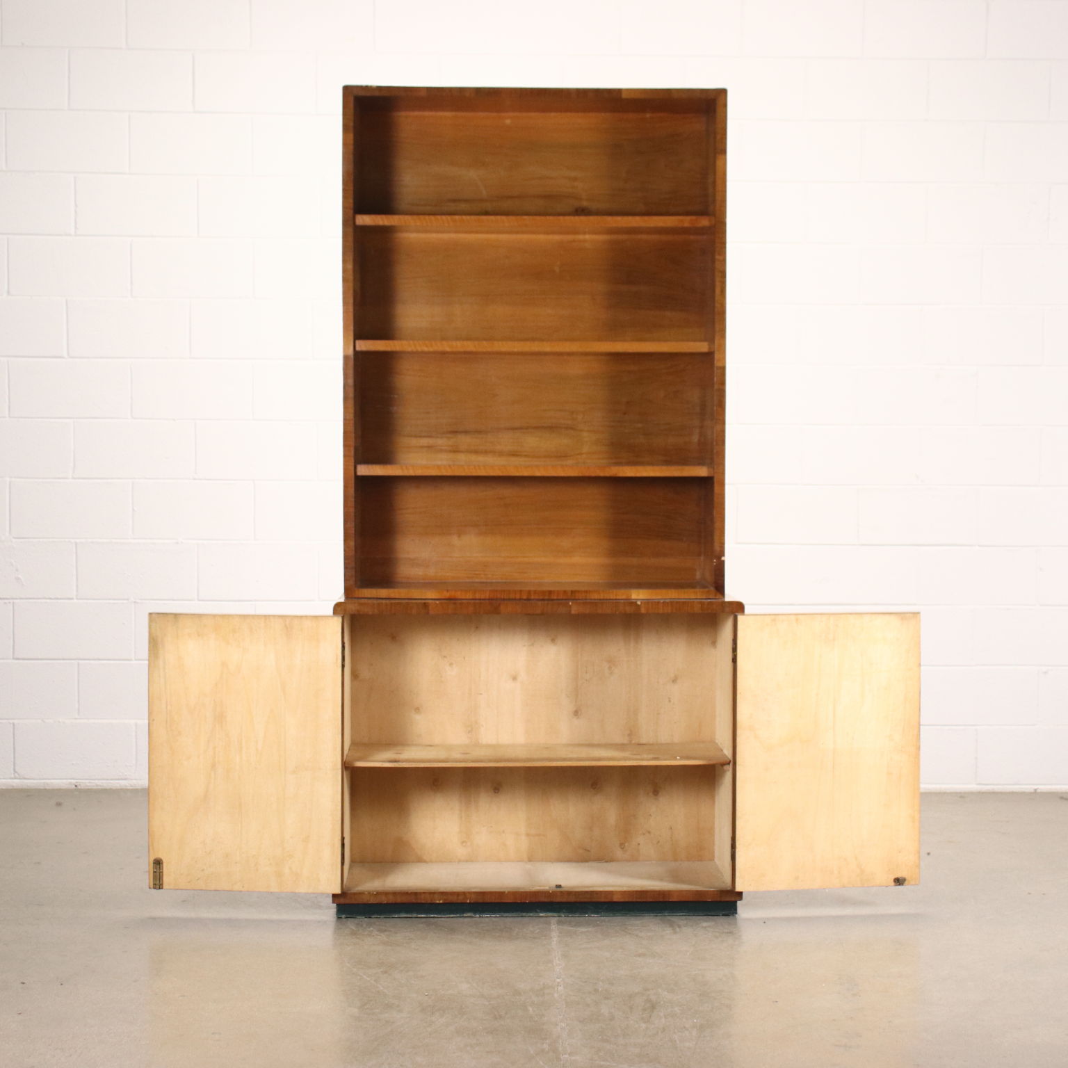 Libreria con vano contenitore inferiore, ad ante battenti. Legno impiallacciato Noce.