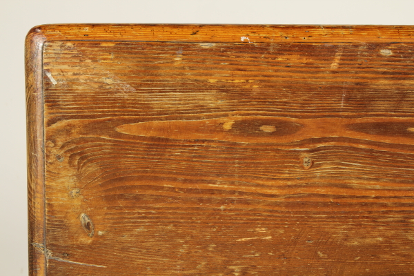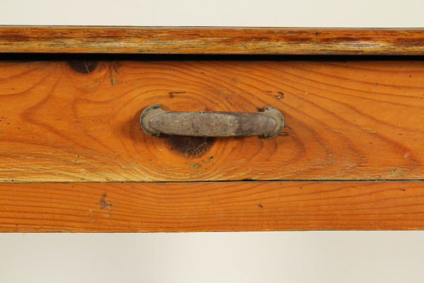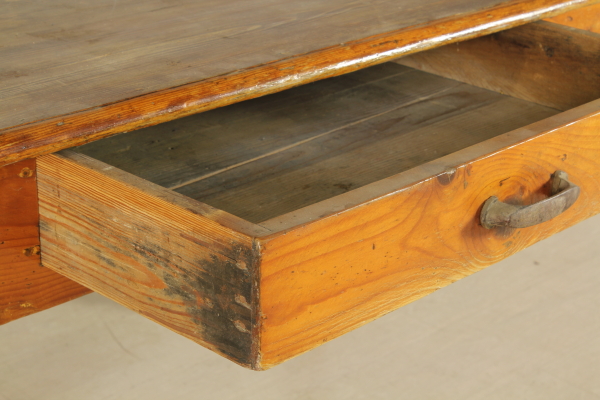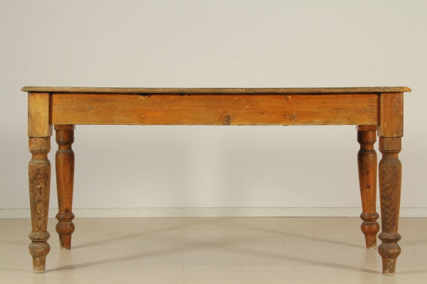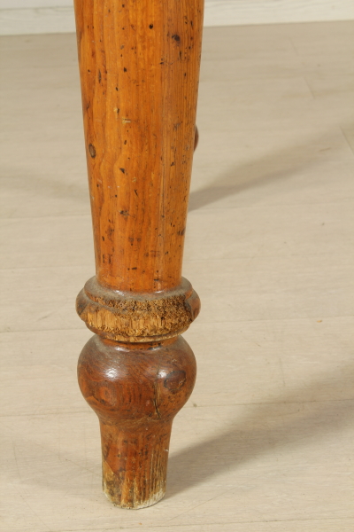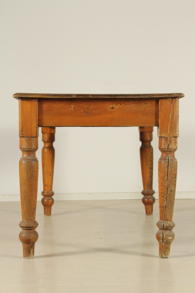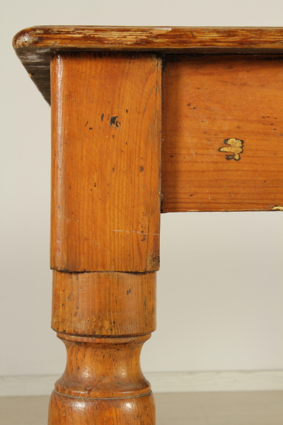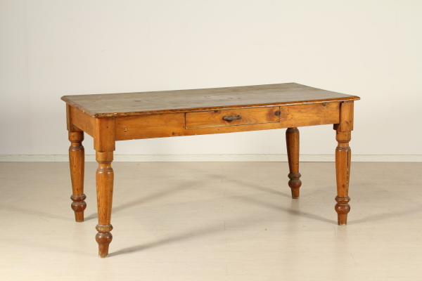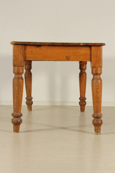 Tavolino retto da gambe tornite, presenta cassetto nella fascia. Piano con bordo sagomato.