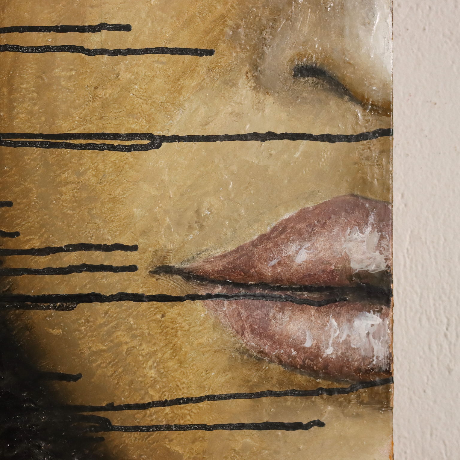 Olio su tela. Datato e firmato al retro. Nato a Seregno, Danilo Martinis si è formato con Osvaldo Minotti. Pittore e designer, ha arredato residenze prestigiose in tutto il mondo, le sue opere sono particolarmente apprezzate negli Emirati Arabi e in Russia. Egli ama esprimere i suoi pensieri attraverso immagini grafico-figurative rese attraverso effetti geometrici e giochi cromatici, utilizzando come interpreti prevalentemente le figure femminili. In quest'opera propone un primissimo piano di un viso femminile, in particolare inquadrando gli occhi.