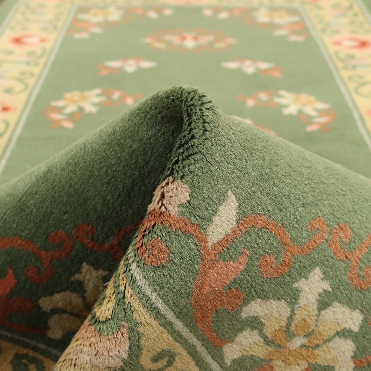 Tappeti Peking Cina in cotone e lana; nodo grosso. Fabbricazione manuale.