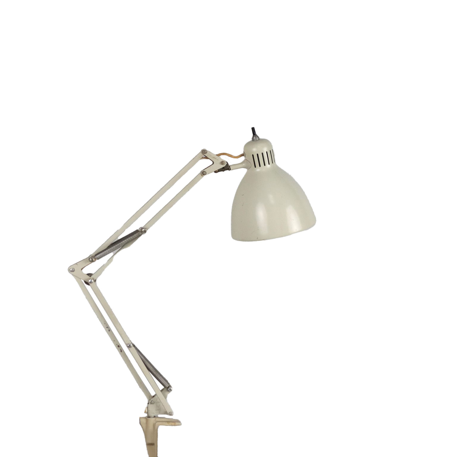 Lampada da tavolo con morsetto. Metallo e alluminio smaltati.