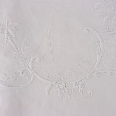 Lenzuolo matrimoniale Molto raffinata la rovescina interamente ricamata a punto pieno che dona rilievo al bellissimo ricamo a tema floreale con monogramma "CD" Bordo ad uncinetto applicato Colore bianco Composizione lino Dimensioni cm 284 x cm 244