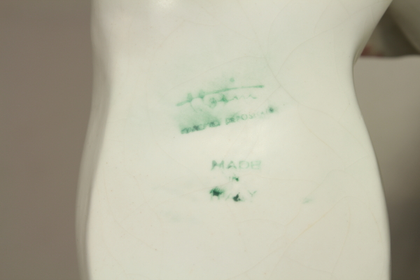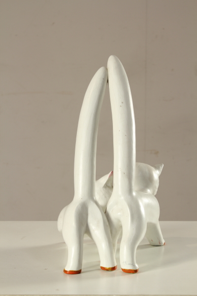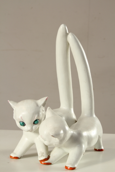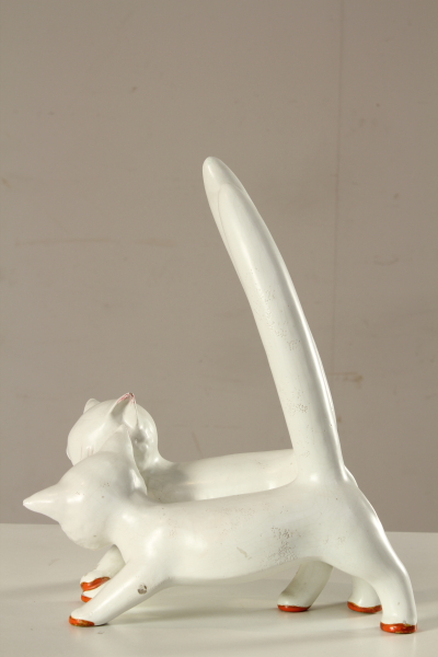 Gattini che giocano. Ceramica maiolicata, firmata. Piccole sbeccature.