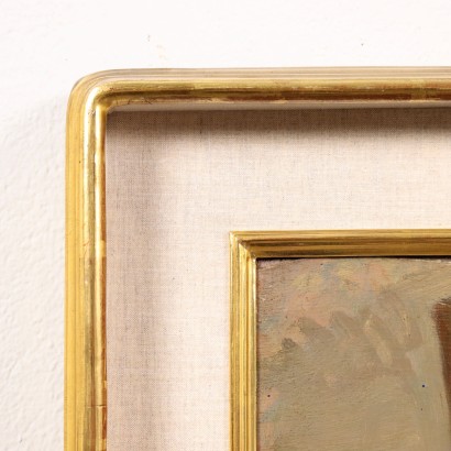 Olio su tavola. Firmato in basso a sinistra. Al retro ulteriore firma e il titolo. Carlo Vitale pittore milanese, nonchè acquafortista e disegnatore, è stato autore di pittura definita "una meditativa e sincera", che nasce dal racconto di una dolce quotidianità; essa è caratterizzata da un cromatismo tenue e delicato accompagnato da un formalismo saldo e allo stesso tempo fatto di morbidezze tonali e disegnative che lo rendono un pittore riflessivo e lirico. I suoi soggetti furono spesso legati ai luoghi dove visse, in particolare quelli dell'ultimo periodo che trascorse in Liguria, a Camogli, che si ritrova nei paesaggi degli ultimi anni. L'opera è presentata in cornice dorata di metà '900.